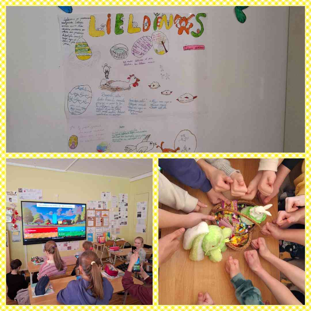 4.b klases skolēni un klases audzinātāja Evija Kosīte – Viļķina spēlēja Lieldienu Kahoot spēli. Skolēni atkārtoja Lieldienu ticējumus, tautasdziesmas, interesantus faktus par šiem svētkiem. Tad kopā ar Ekopadomes jaunietēm piedalījās radošā darbnīcā. Tapa skaisti Lieldienu zaķēni. Skolēni sociālās zinības un vēstures stundās izveidoja Lieldienu plakātus. Kur tad nu Lieldienas bez gardumiem! Paldies Lieldienu zaķiem, kuri atnesa saldumus!