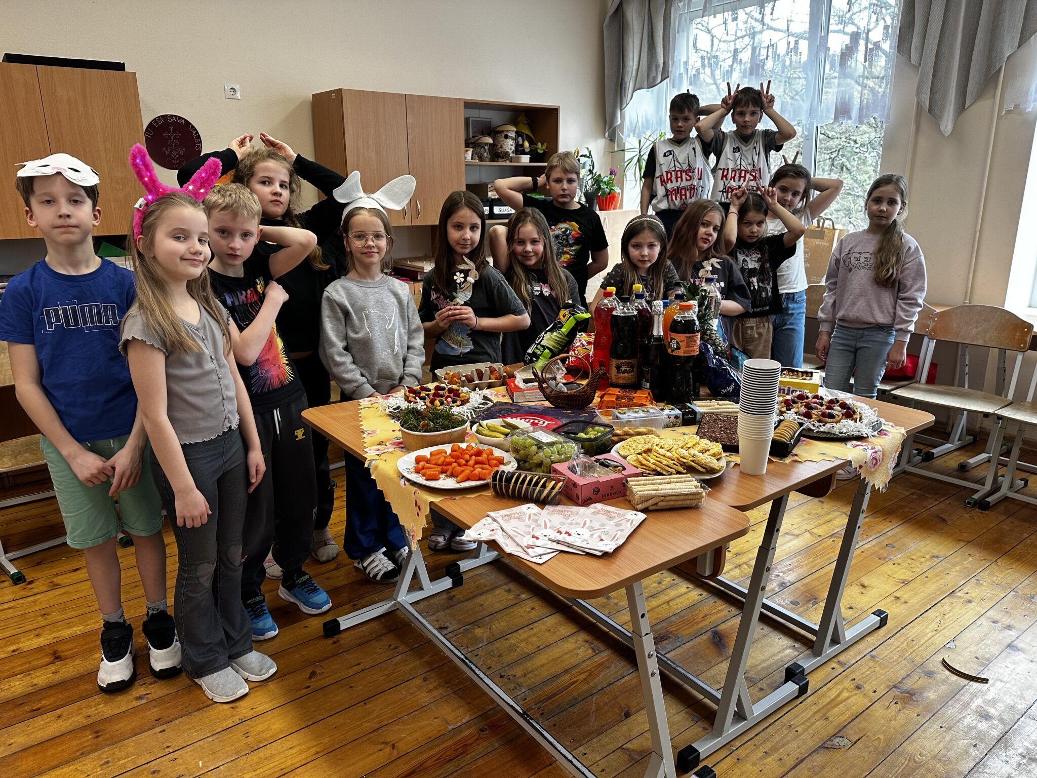 Klases pasākumu kuplināja kustību rotaļas un spēles, atjautības uzdevumu risināšana un anekdošu stāstīšana, tā vairojot prieku.