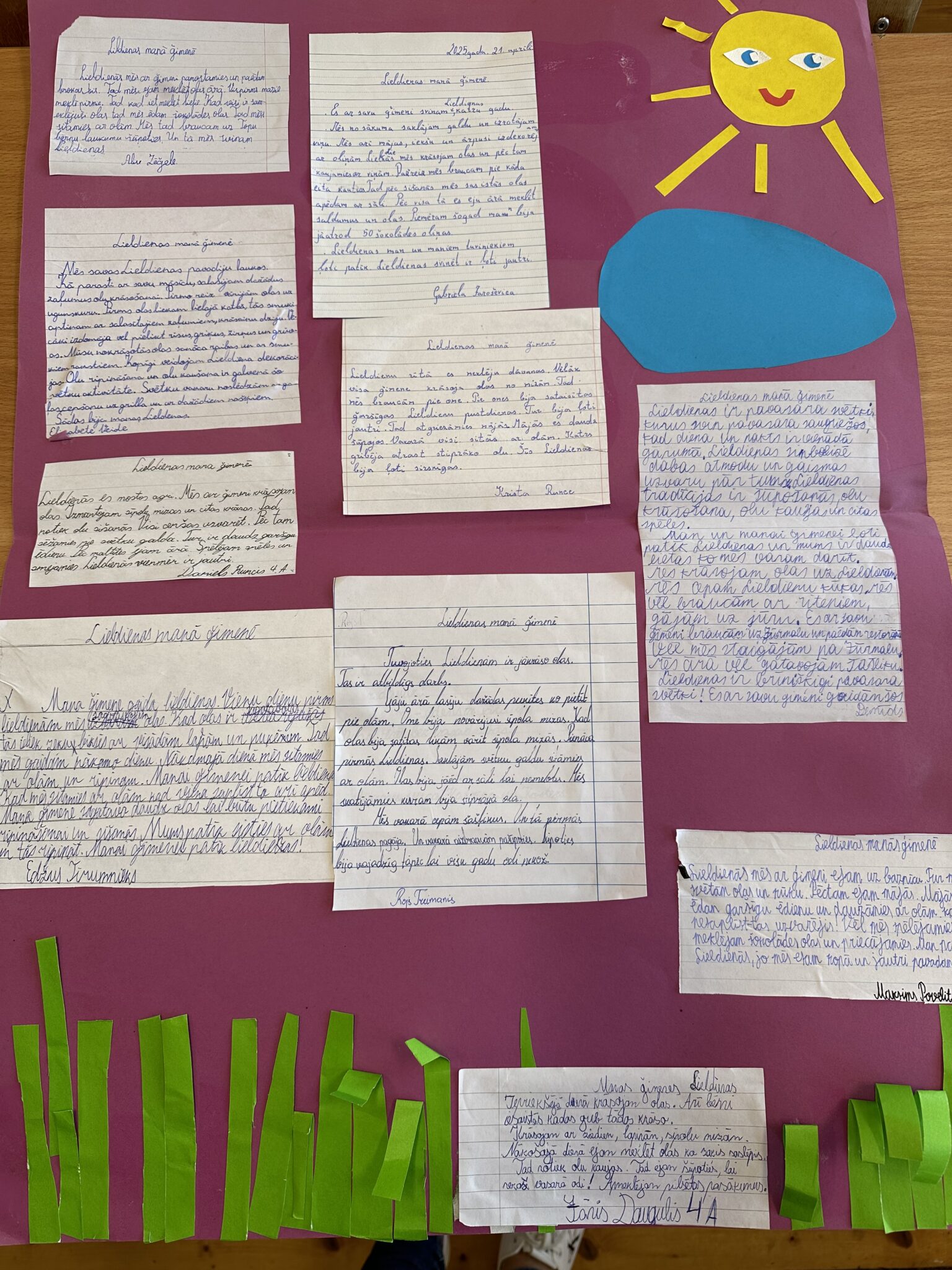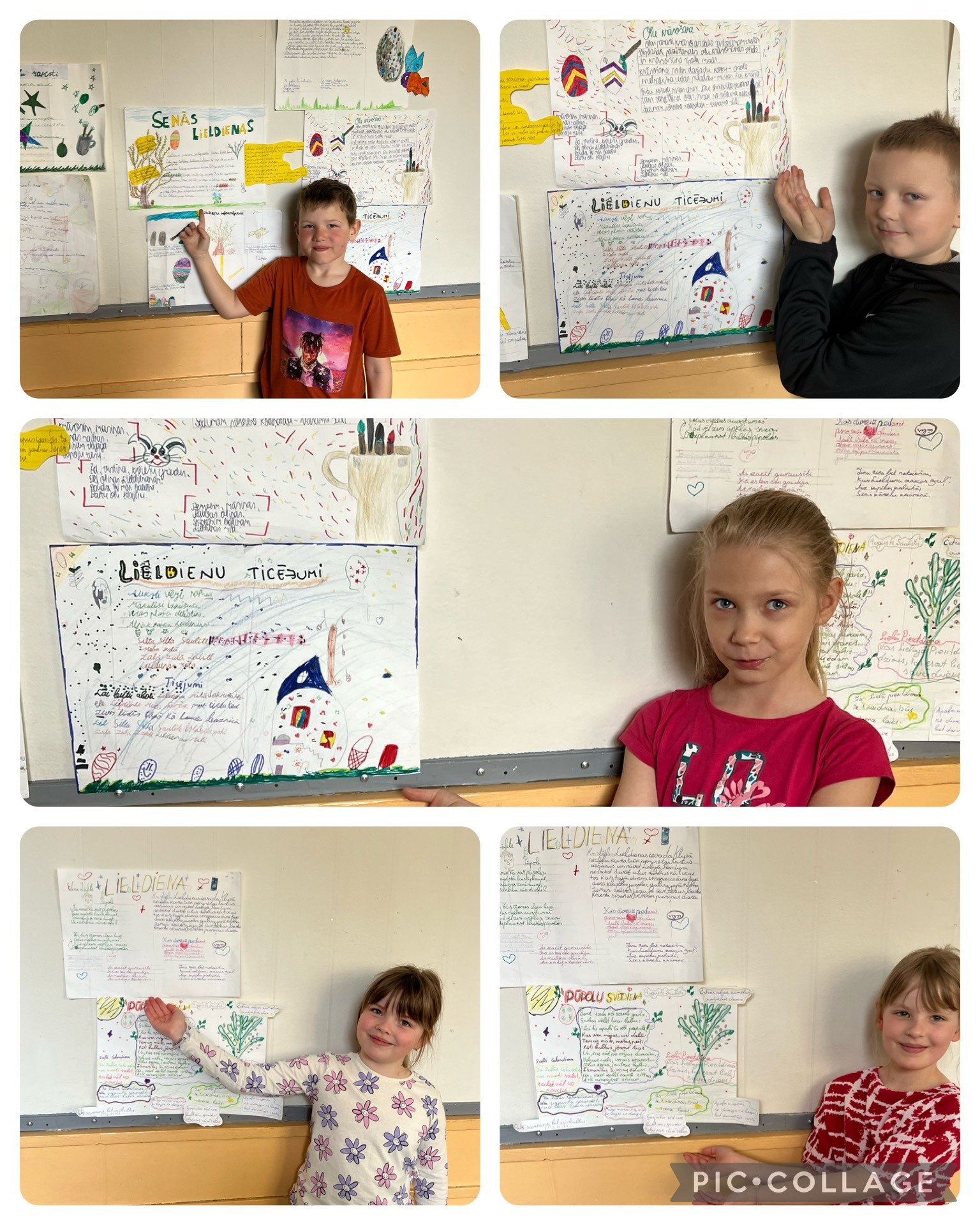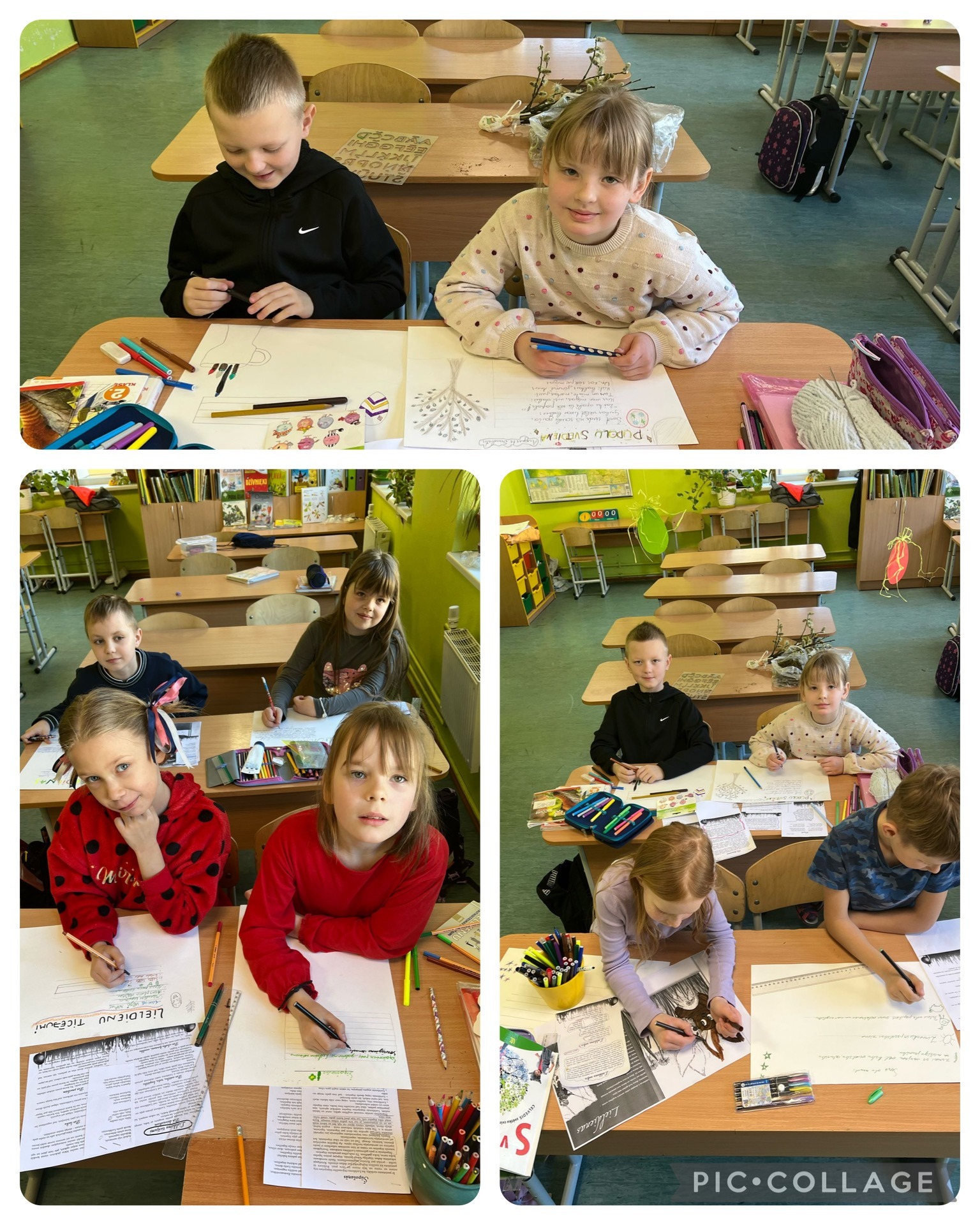 4.a klases skolēni svētkus savienoja ar mācību darbu, rakstot, kā katrs mājās ir noķēris savas Lieldienas.