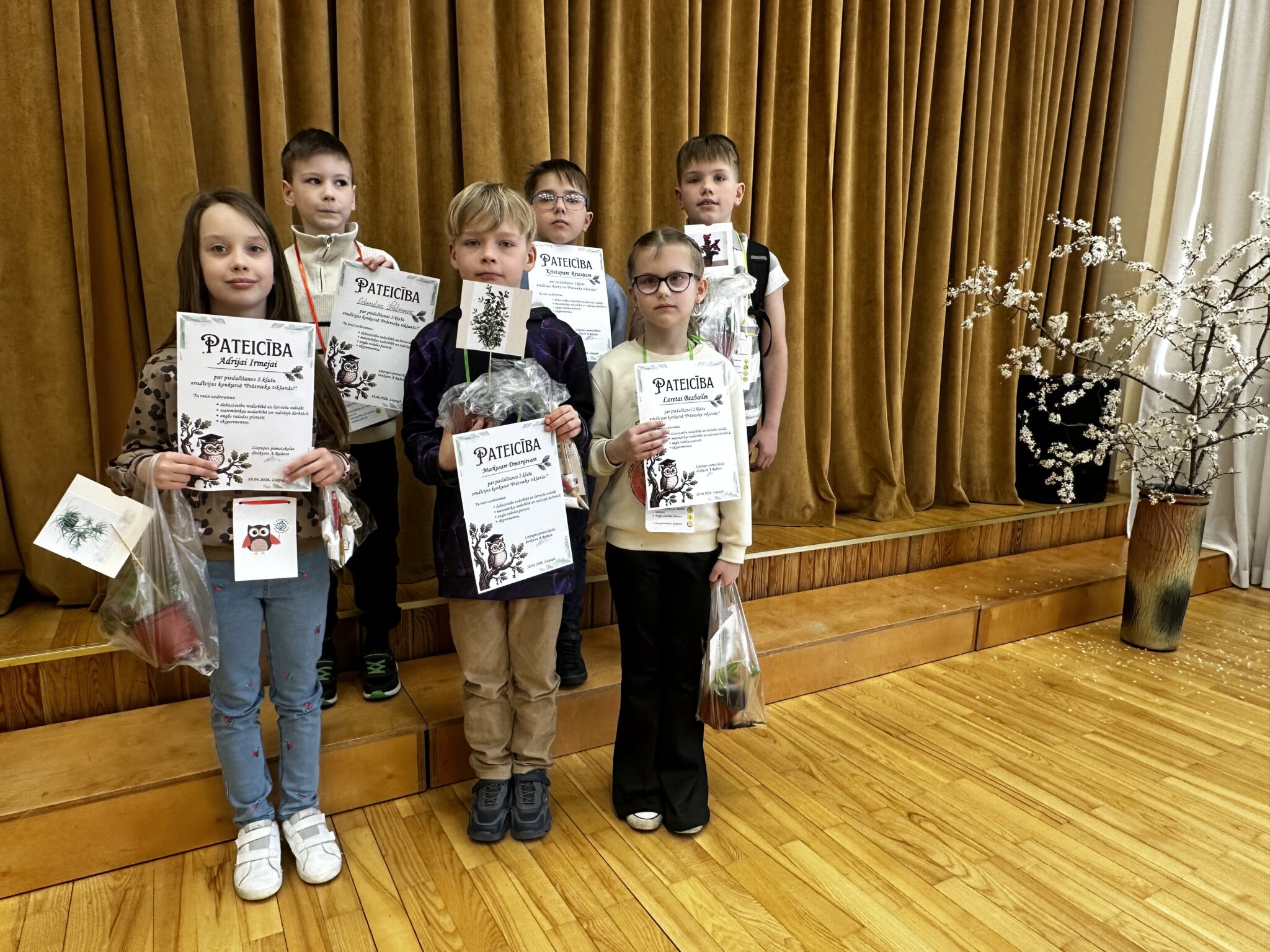 Mūsu skolu pārstāvēja 2.a klases skolēni – Kristaps Reiziņš un Leino Lielpēteris, 2.b klases skolēni – Loreta Bezbaile un Markuss Dmitrijevs un 2.c klases skolēni – Adrija Irmeja un Edvards Petrovs.