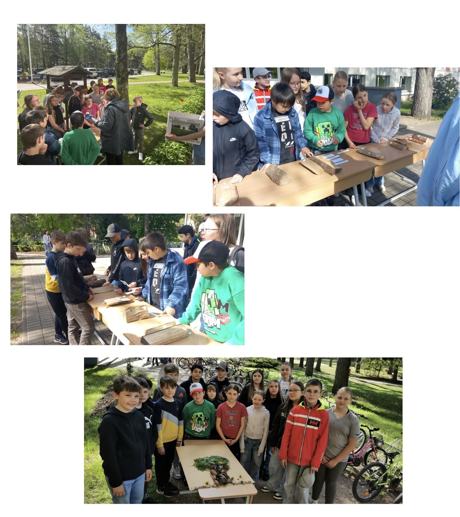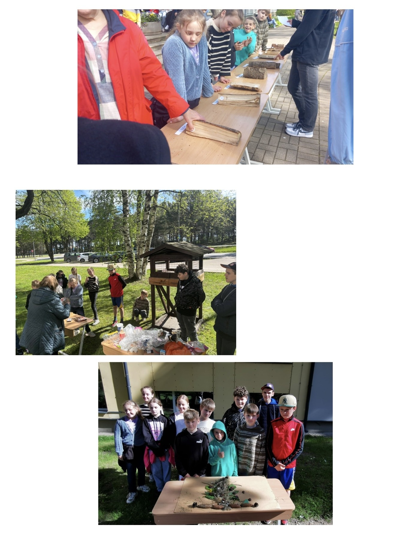 Šeit skolēniem bija jāatpazīst desmit koku sugas pēc to mizas (koka pagale), kad tas izdarīts, kokam jāpievieno tā ziedi un lapas. Grūtības sagādāja atpazīt gobu, taču visātrāk skolēni atpazina bērzu. Otrā ekoskolas stacijā bija jāprot sašķirot atkritumus. Ja skolēniem tas neizdevās precīzi, skaidrojumu sniedza skolotāja Laimdota Pelše. Trešajā stacijā skolēni strādāja radoši – salika, izveidoja, būvēja koku no dabas materiāliem.