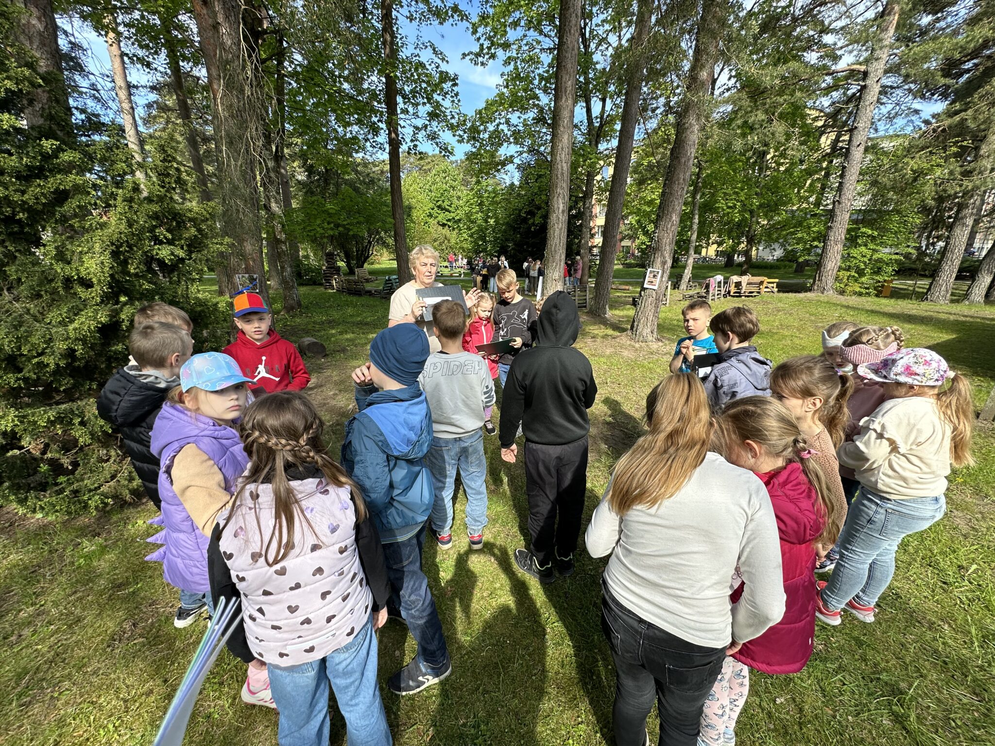 Savukārt, skolotāja Inta Soma skolēnus iepazīstināja ar putnu dziesmām – bērniem bija jāatdarina putnu dziesmas, kā to dzird ornitologi (uz lapiņām bija sarakstīti īsti mēles mežģi, tos skolēni izdziedāja). Pēc tam devās sameklēt jeb atpazīt pašus putnus. PALDIES sakām mūsu sadarbības partneriem no DIC – Intai Somai un Lindai Kauliņai.