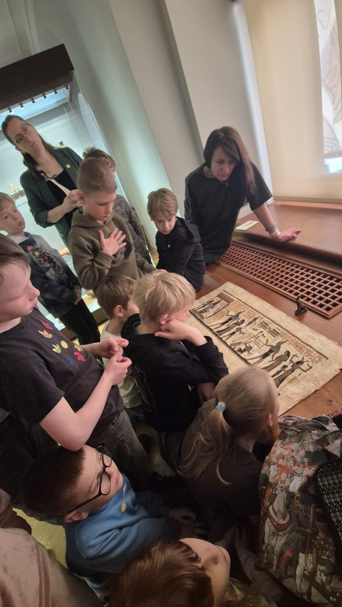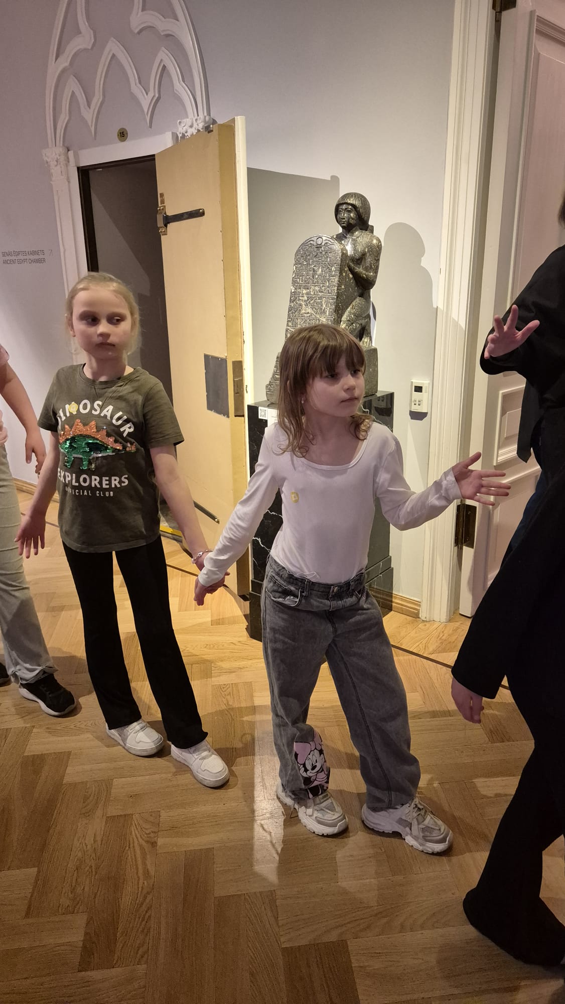 Pirmā pietura bija Mākslas muzejs “Rīgas birža”, kur skolēni piedalījās izglītojošā nodarbībā “Ēģiptes kabinets” (ar projekta “Skolas soma” atbalstu). Tajā bērni iepazinās ar vienu no senākajām pasaules civilizācijām — Senās Ēģiptes kultūru. Nodarbības laikā tika apskatīta ēģiptiešu māksla un tradīcijas, izzināts balzamēšanas process, kā arī radās iespēja ieraudzīt īstu priestera mūmiju. Īpašu interesi raisīja arī senās monētas un jautājums, kas aizrāva visus: vai piramīdās patiešām bija slazdi? Daļai skolēnu šī bija arī pirmā pieredze mākslas muzejā.