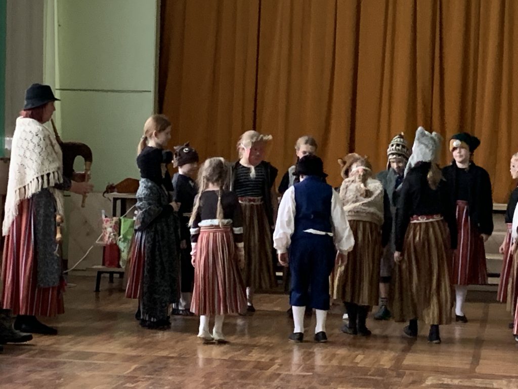 Mūsu bērnu ausīm netradicionāli šajā dienā skanēja dūdu skaņas, ko izpildīja igauņu folkoras kopas skolotāja, bet skolēni tikmēr dejoja līdzīgu deju kā latviešiem “Cūka driķos…”
