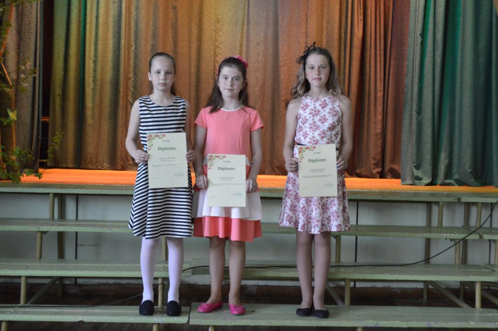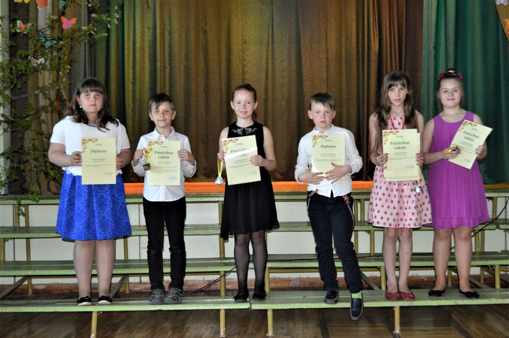 Kā paši pirmie par īpašiem sasniegumiem mācību un kultūras darbā tika godināti 1.-3. klašu skolēni. Apbalvojumus par iegūtām godalgotām vietām un atzinībām mācību priekšmetu olimpiādēs saņēma – Jasmīna Anna Simsone (2.a klase), Jasmīne Majore (3.a klase), Adrians Ginters (3.a klase) un Mare Malvīne Īstenā (3.a.klase). Apbalvojumus par iegūtajām pakāpēm folkloras jomā ieguva Madars Eizenbergs (1.b.klase) un Madara Metuse (3.a klase).
