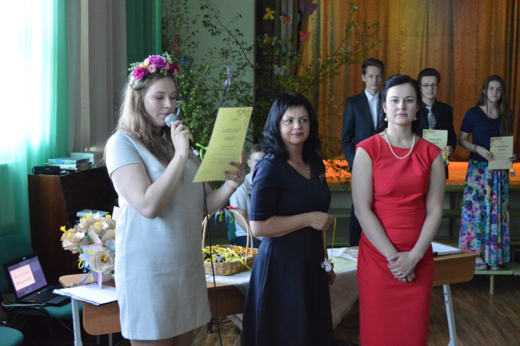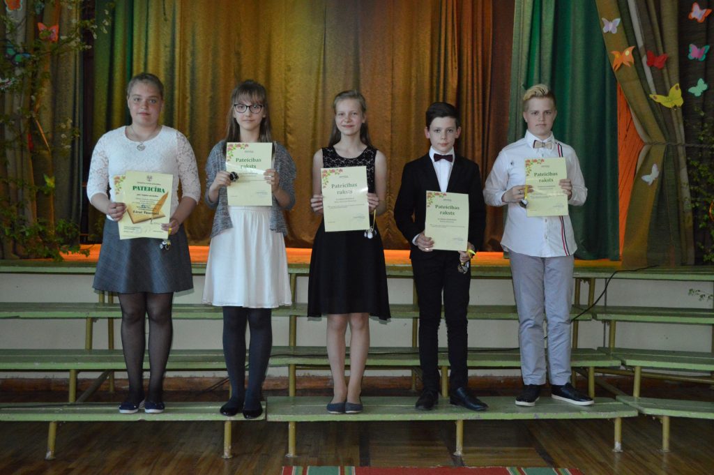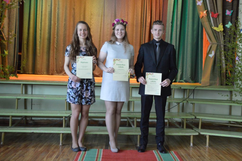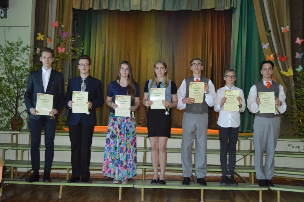 Vidusskolas klašu grupās augsti sasniegumi mācību priekšmetu olimpiādēs ir Kristai Muciņai (10. klase), Kristiānam Kacaram (10. klase), Nadīnai Ozoliņai-Mennikai (11. klase), Diānai Tīrumniecei (12.klase) un Ričardam Kauliņam (12. klase). Apbalvojums par augstiem sasniegumiem folkloras un kultūras jomā – Līgai Ieviņai (11. klase). Pēc sveikšanas skatītājus sagaidīja 8.-12. klašu skolēnu tautas deju kolektīva ”Vēverīši” priekšnesums, kas iepriekš bija priecējis skatītājus Vācijā.
