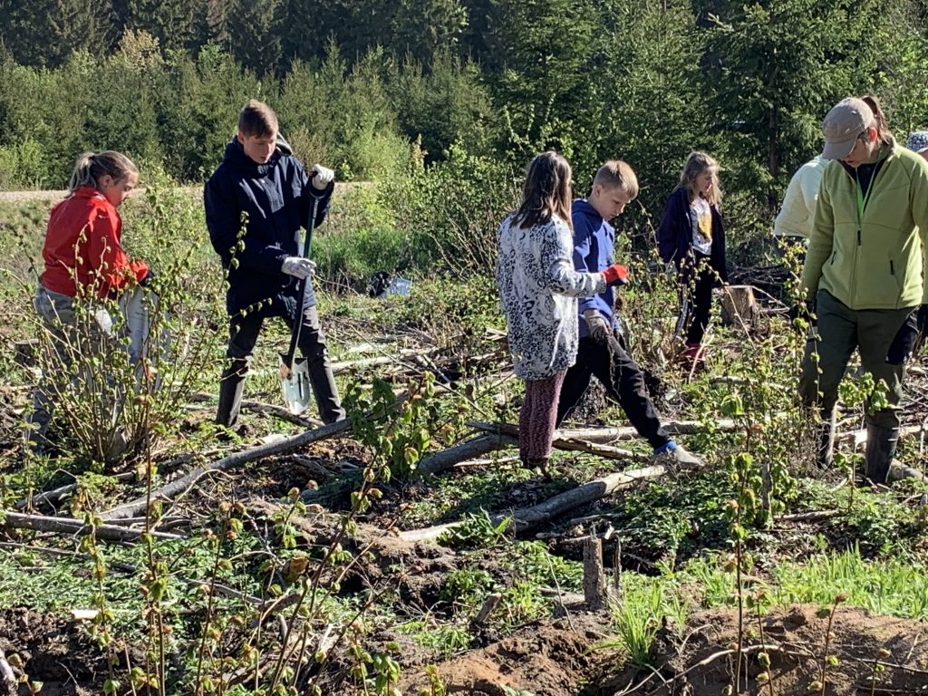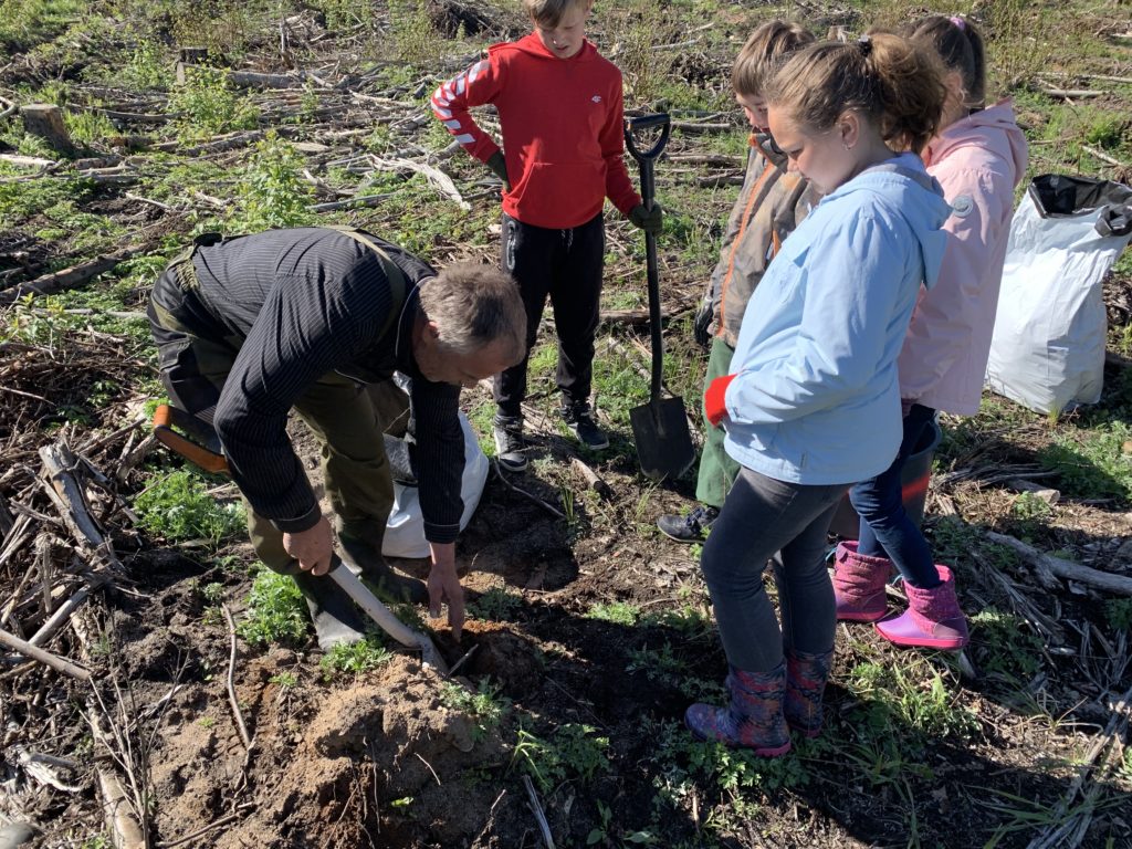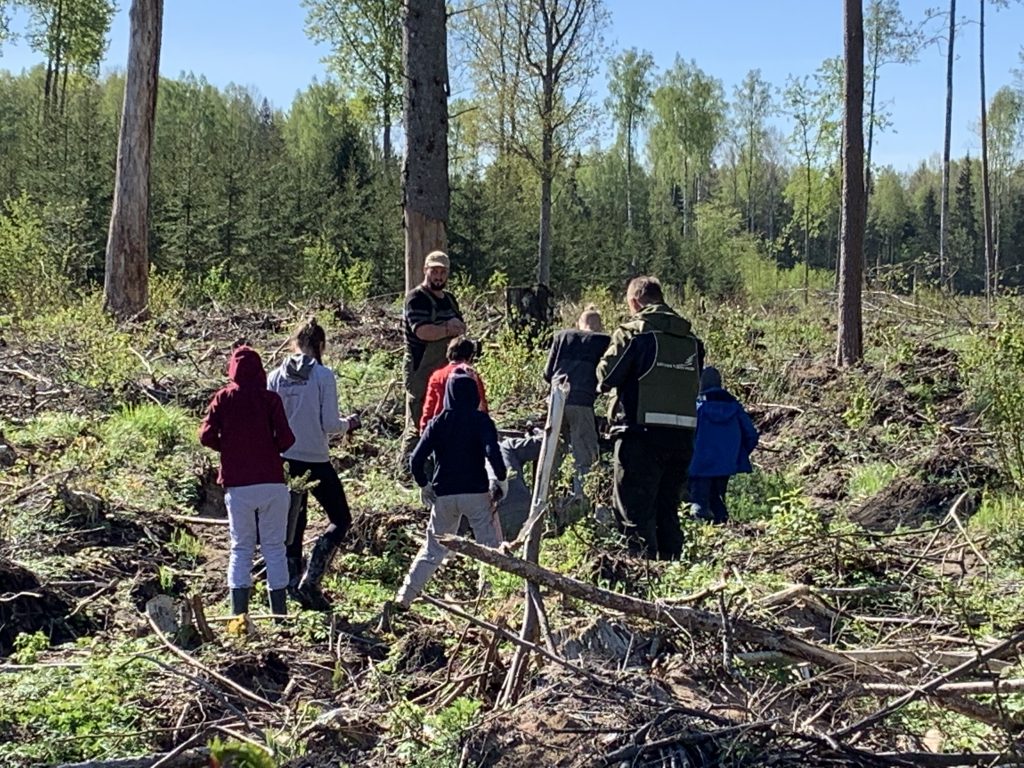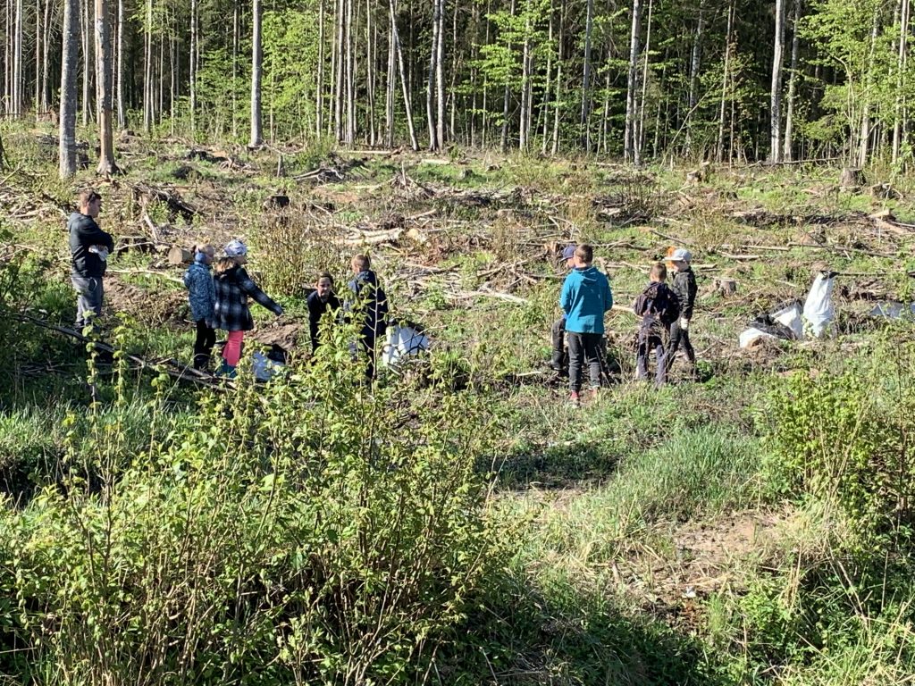 Jau 12 gadus sadarbojoties ar Rietumvidzemes mežsaimniecības mežkopības vadītāja vietnieku Vili Pūteli, dodamies stādīt mežu tepat netālu – Igaunijas pierobežā pie Dižozola. Parasti stādījām priedītes, izmantojot īpašu ierīci – stobru, tas skolēnus ļoti aizrauj, jo instruments tiem ir jaunums. Taču šogad stādījām eglītes, nedaudz sarežģītāk – ar lāpstu, viegli nebija, apstādāmais gabals pilns ar kritušiem kokiem, koku zariem, bet mēs to pieveicām.