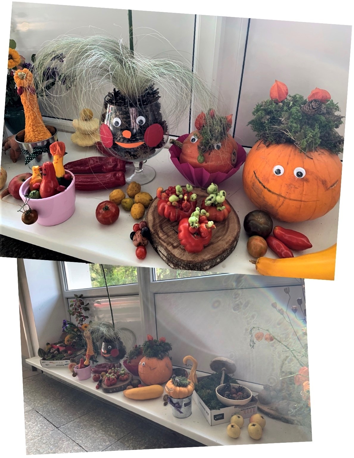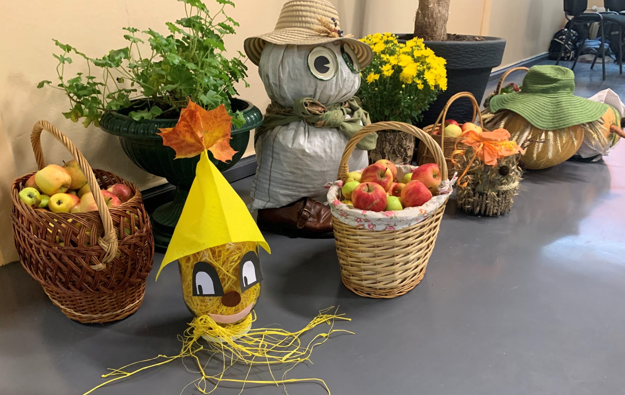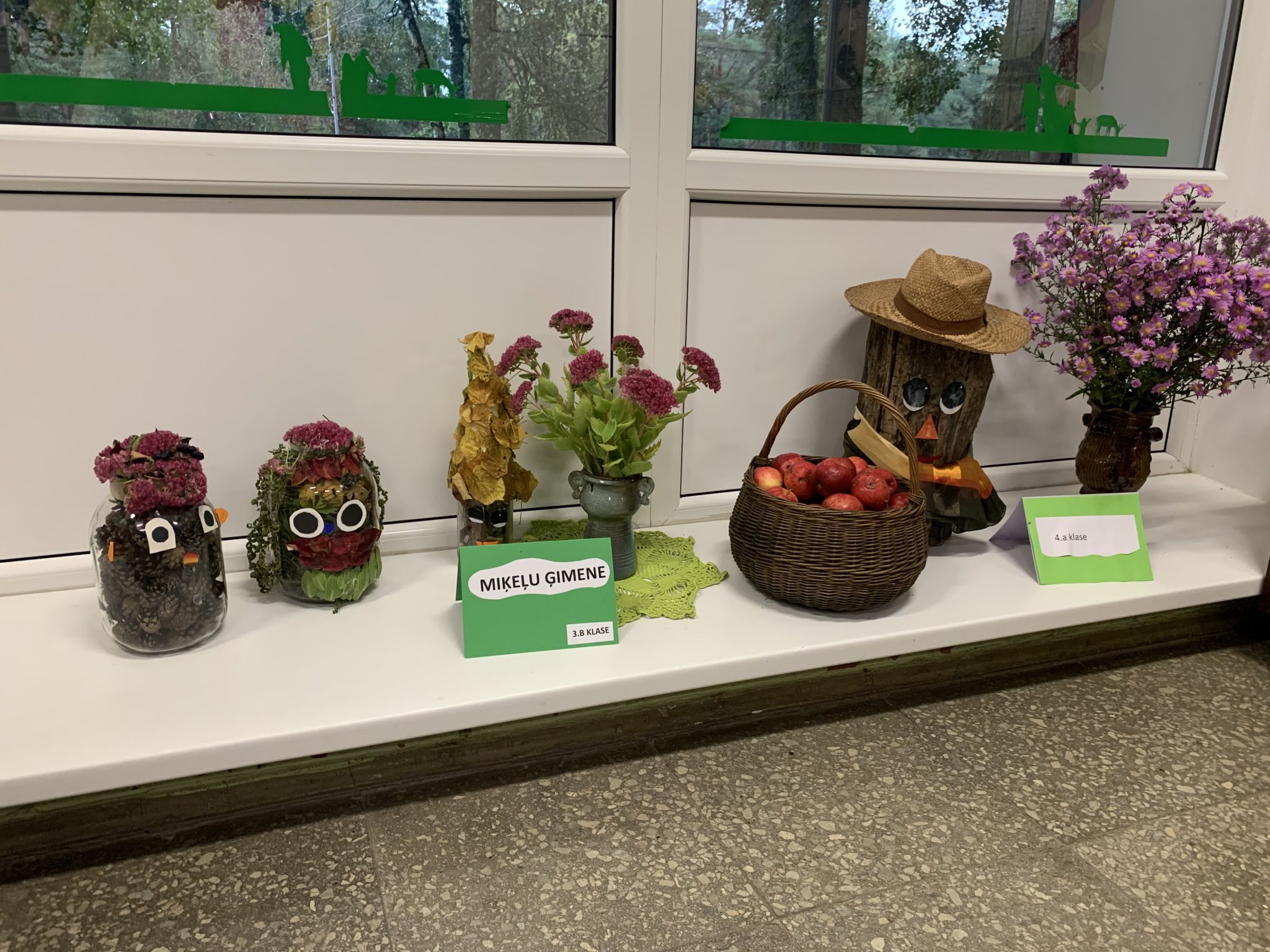Sākumskolas skolēni bija sarūpējuši krāšņu rudens izstādi, ko varējām baudīt gan ar acīm, gan, vistiešākā nozīmē, ar muti, jo pilnie ābolu grozi aicināja tos iztukšot, lai saņemtu vitamīnu devu ziemas periodam.