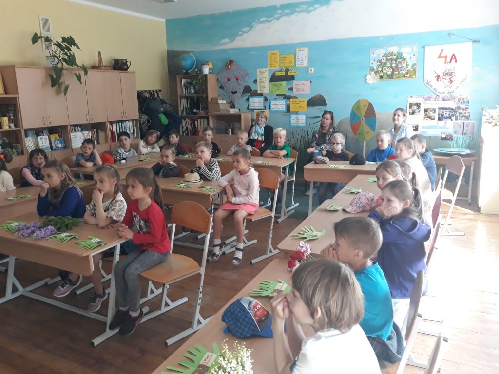 Ceturtklasnieki un viņu klases audzinātāja visus aizveda uz savu klasi.