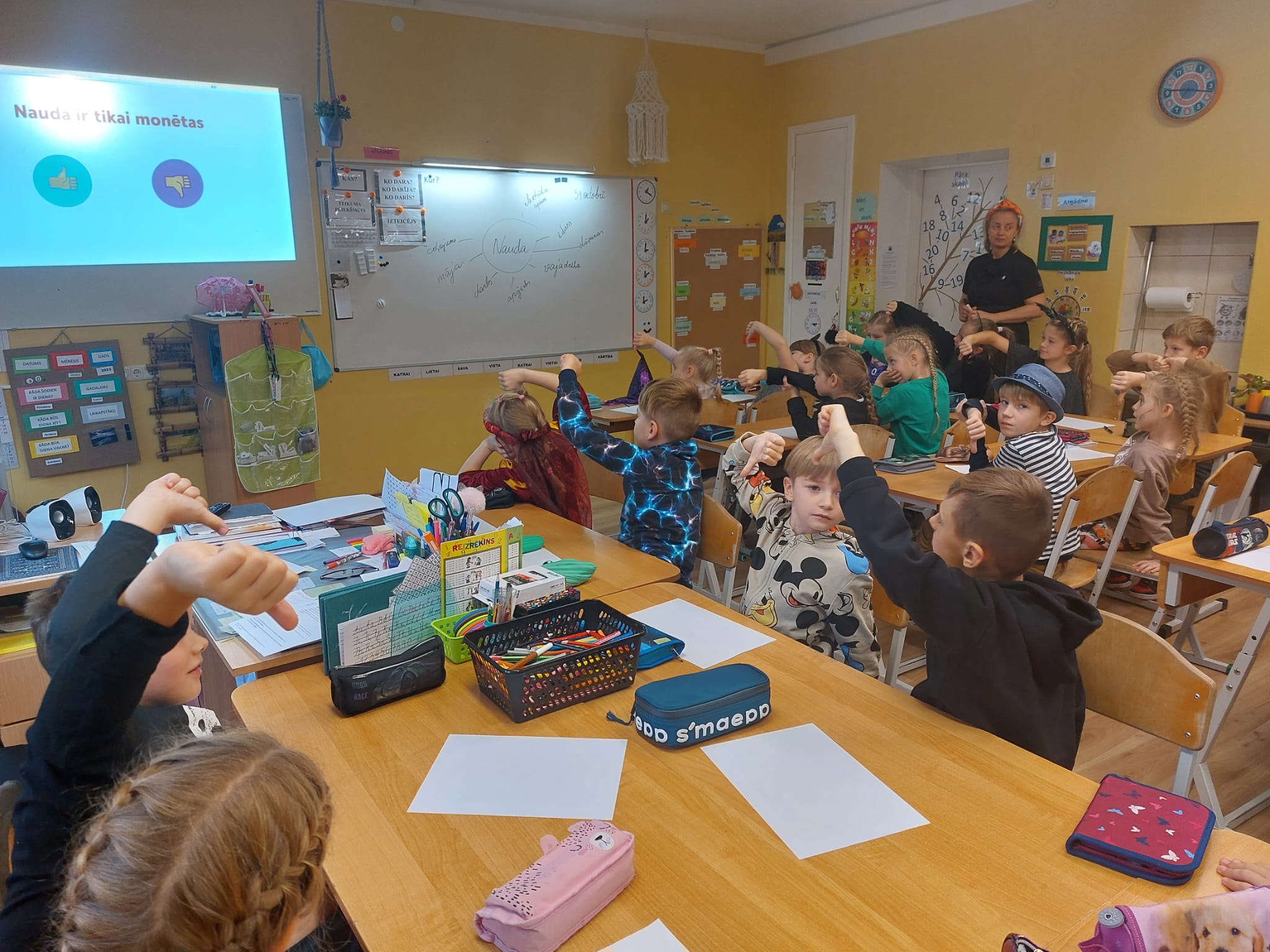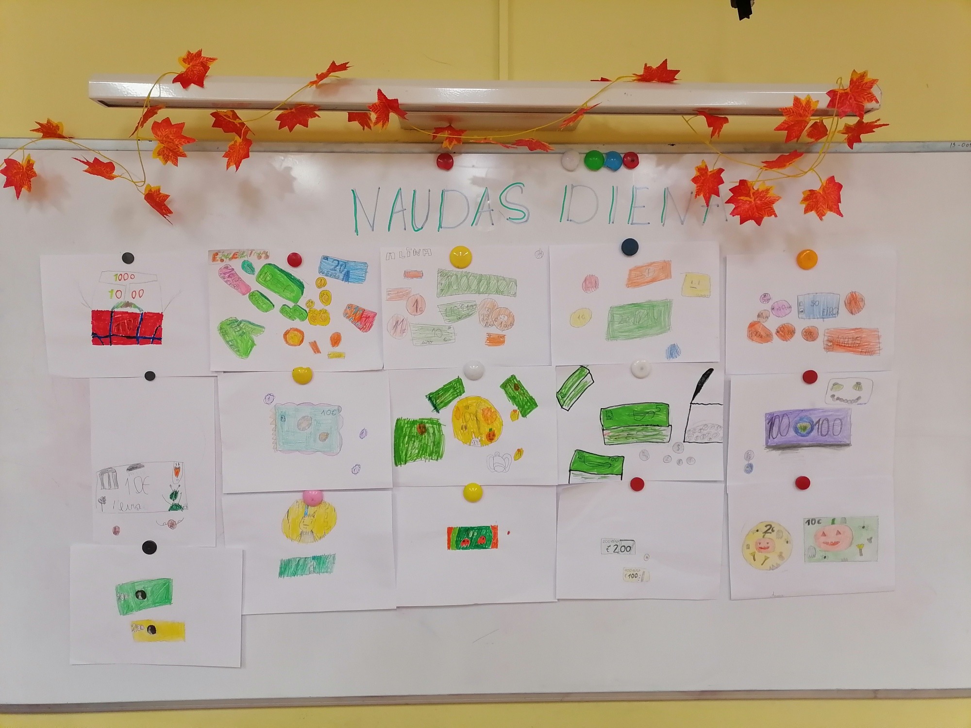 1., 2. klašu skolēniem bija nodarbība “Nauda. Tās veidi un drošība.