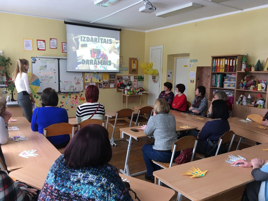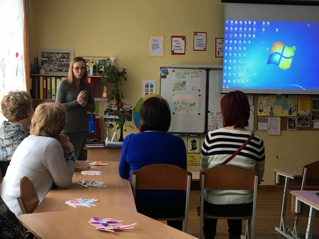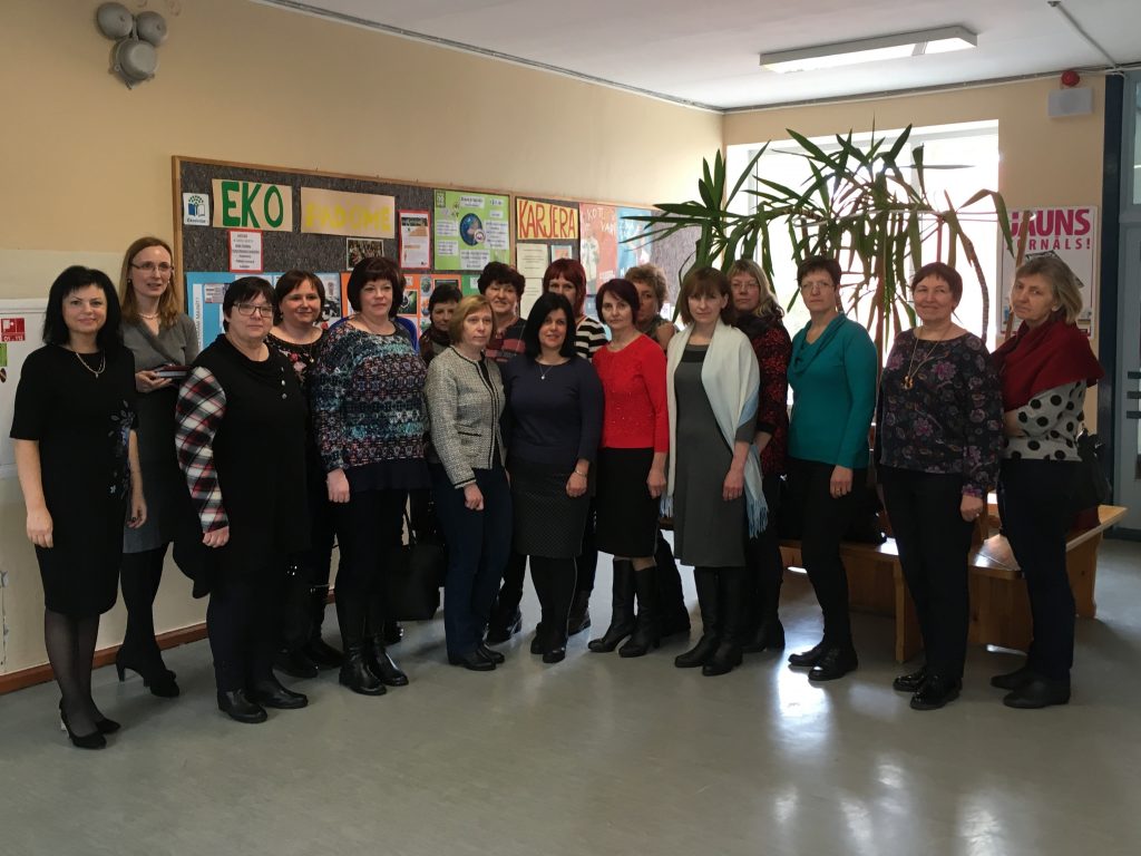 Pirmajā brīvlaika dienā mūsu skolu apciemoja  16 skolotāji no Naukšēnu vidusskolas. I.Cirša iepazīstināja ar skolu , skolas projektiem, interešu izglītību, tradīcijām. Sarunu gaitā noskaidrojās arī kopīgas problēmas – smēķētāji un mācību stundu kavētāji,  skolēnu skaita samazināšanās, mājas darbu uzdošana, gatavošanās kompetenču mācīšanas pieejai. Viesus īpaši interesēja divas lietas – Ekoskolas darbība un pieredze speciālās izglītības nodrošināšanā.  Par paveikto Ekoskolas programmā viesus iepazīstināja Eko-padomes aktīvistes – Diāna Zmičerevska, Elizabete Bērziņa, Monta Mieze, Elīna Gertnere, Linda Ivanova, kuras bija sagatavojušas uzskatāmu prezentāciju un ar pārliecību stāstīja par paveikto. Savukārt speciālās izglītības skolotāja A.Gromova-Ķūrena dalījās pieredzē darbā ar speciālās izglītības programmām, īpaši –  individuālo plānu izstrādē.  Divas stundas paskrēja ātri, saņēmām ielūgumu braukt ciemos, turklāt prieks bija ciemiņu  rindās sastapt arī vienu mūsu skolas absolventi.