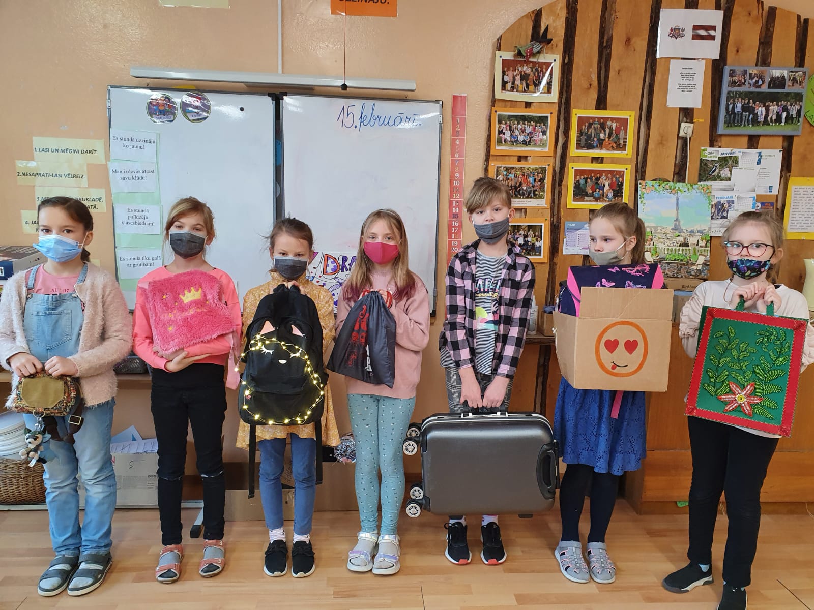 1.b ar kalses audzinātāju Lauru Ilvesu2.klases radošie zēni2.klase3.a klase8.a klase8.b klase4.a klases somas6.b klaseLaura Ende un Inta Cirša arī atradušas neparastas somas.