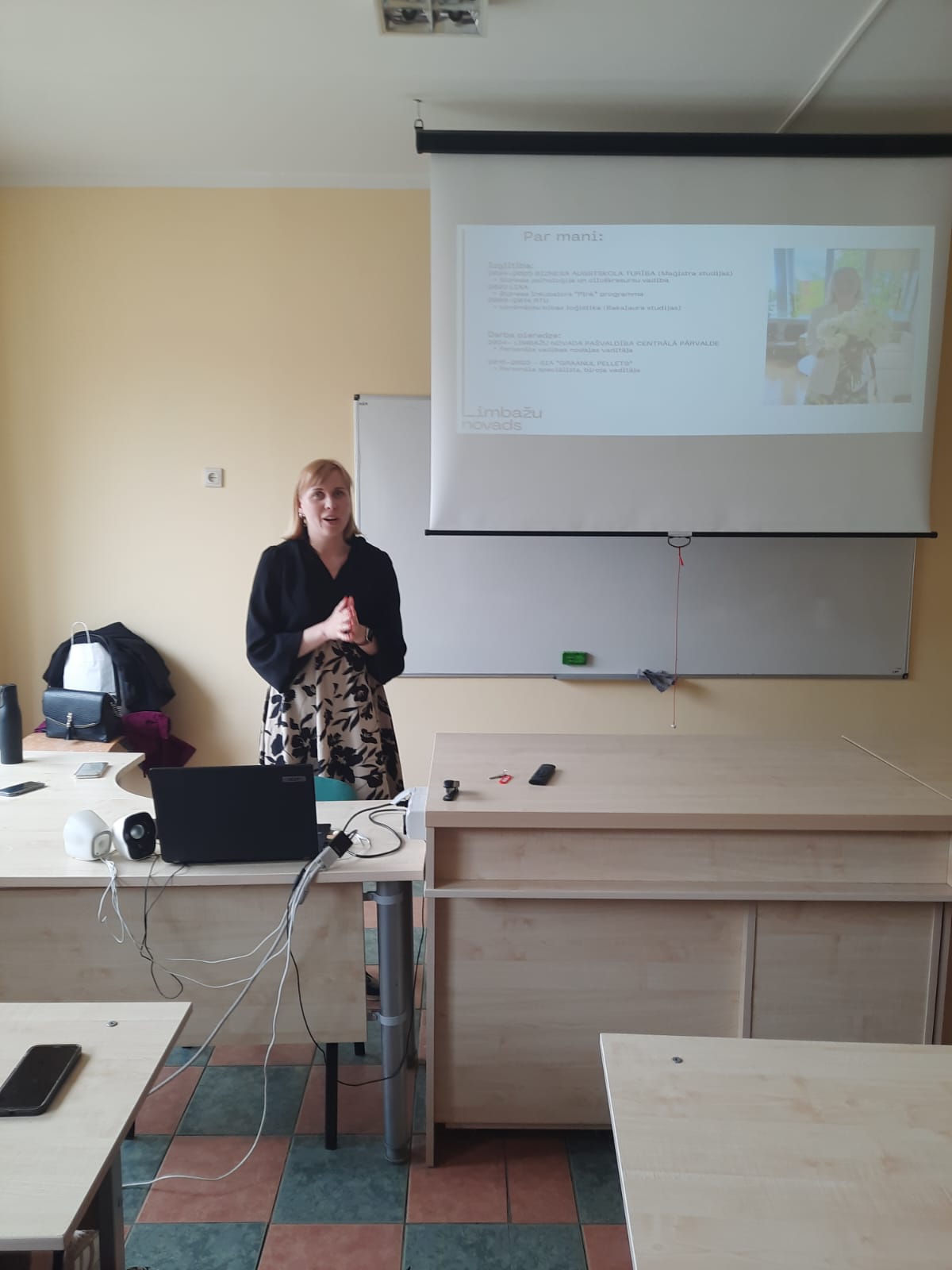 28.aprīlī Skolēnu ministrijas realizētā līdzdalības projekta “Karjeras kompass. Atrodi savu virzienu” ietvaros notika tikšanās ar Limbažu novada pašvaldības Centrālās pārvaldes Personāla vadības nodaļas vadītāju Sandru Smiltnieci.