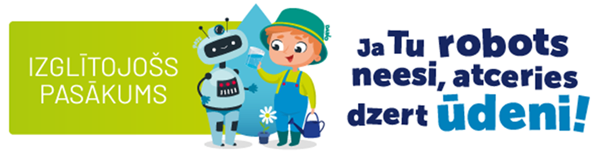 Pasākuma “Ja Tu robots neesi, atceries dzert ūdeni!” ietvaros interaktīvu un aizraujošu uzdevumu veidā pasākuma vadītāji robots Pats un dārznieks Dario iepazīstināja izglītojamos ar tādām tēmām, kā ūdens loma cilvēka organismā un ieguvumi no tā pietiekamas uzņemšanas, nepietiekamas ūdens uzņemšanas un pārmērīgas saldināto dzērienu lietošanas negatīvās sekas, kā arī tika rasti praktiski risinājumi, kā veicināt ūdens dzeršanu ikdienā, veidojot noturīgu paradumu.
