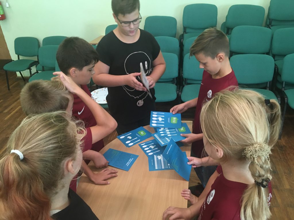 1. Stafete „Produktu grupas” – uzdevuma laikā tika pārbaudītas skolēnu zināšanas par dažādu pārtikas produktu piederību produktu grupām.