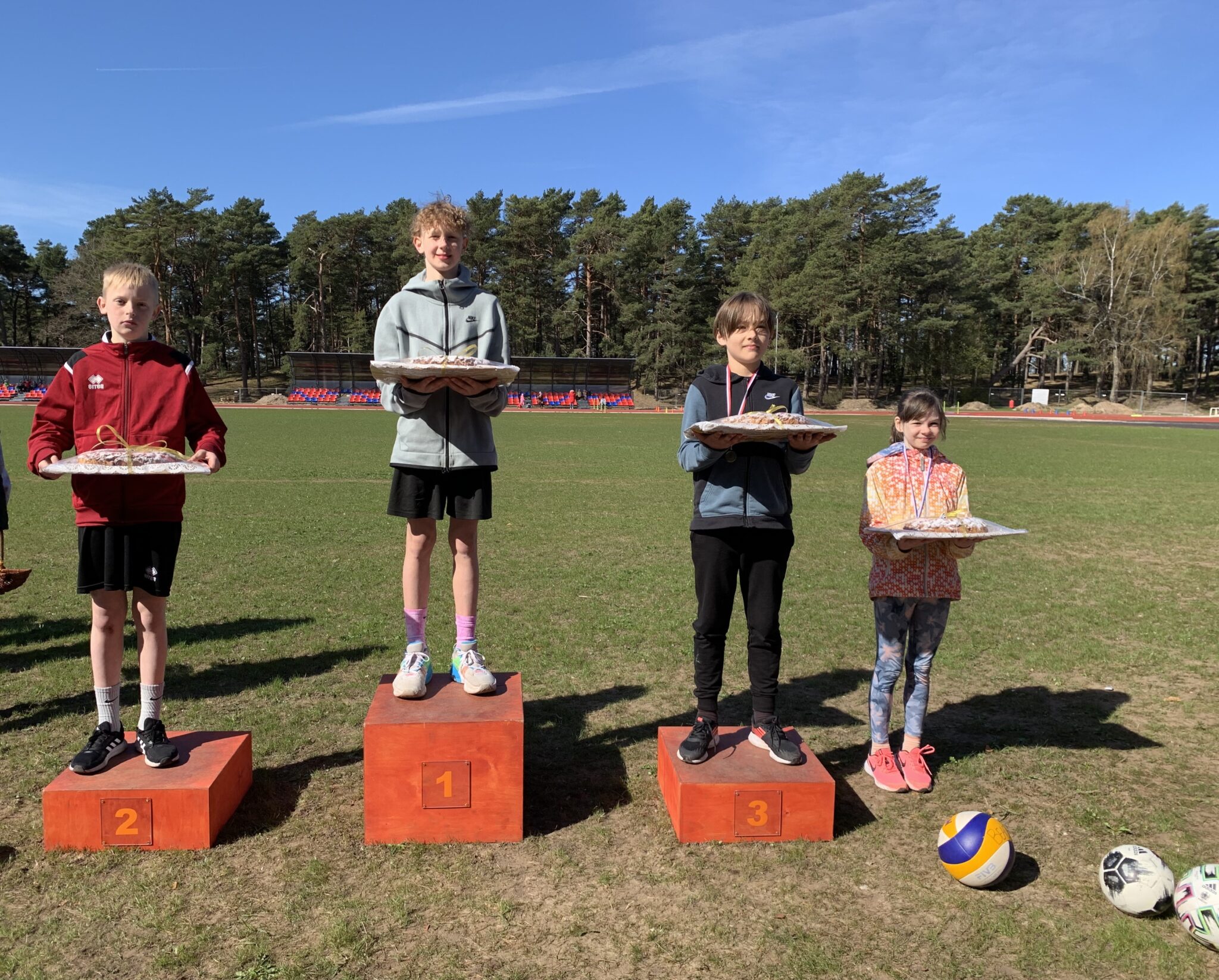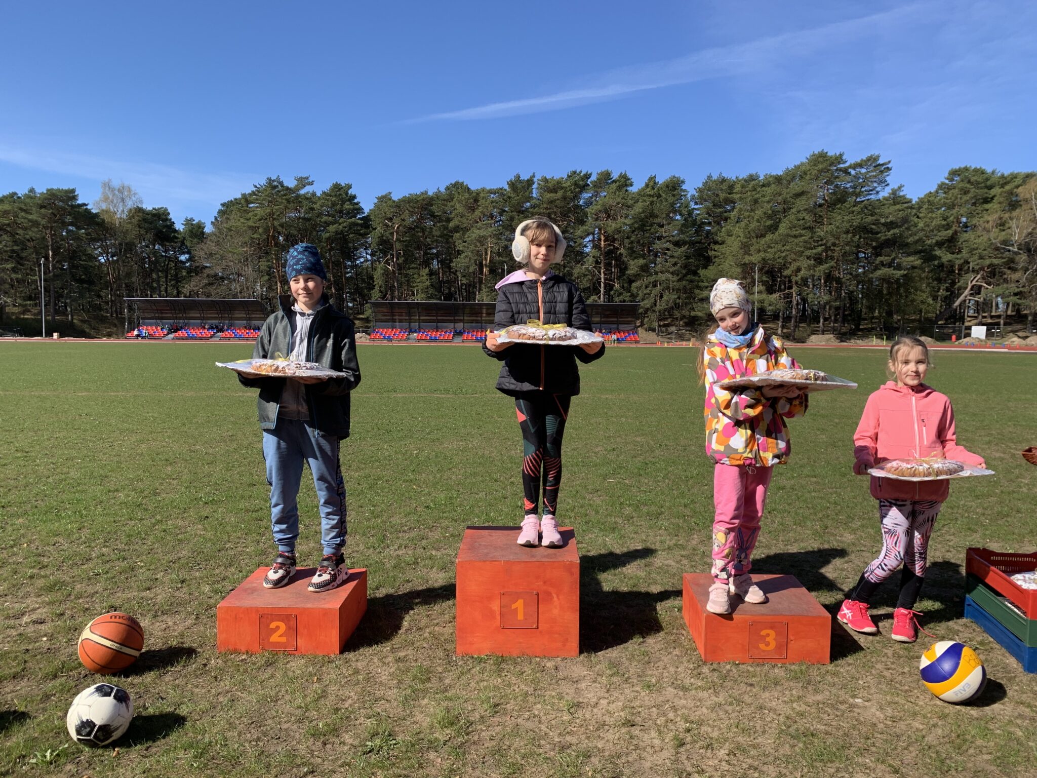 1.klašu skolēni vēl piedalījās dažādās stafetēs, kā arī spēlēja “Tautas bumbu”.