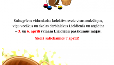 13.aprīlī Salacgrīvas vidusskolā tika organizēta Salacgrīvas novada atklātā angļu valodas olimpiāde. Lepojamies ar mūsu skolēnu sasniegumiem: Sandis Vosekalns (7.b klase) ieguva 1.vietu, Signe ...Lasīt tālāk