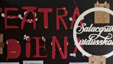 14.novembrī Salacgrīvas vidusskolas saime pulcējās uz svinīgu un sirsnīgu pasākumu “Mūsu Latvija”, lai kopīgi godinātu mūsu valsts dzimšanas dienu. Skatuve, rotāta Latvijas karoga