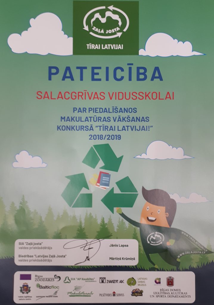 Paldies Salacgrīvas vidusskolas skolēniem un viņu vecākiem par ieguldīto darbu makulatūras vākšanas konkursā. Kopā mēs varam daudz!