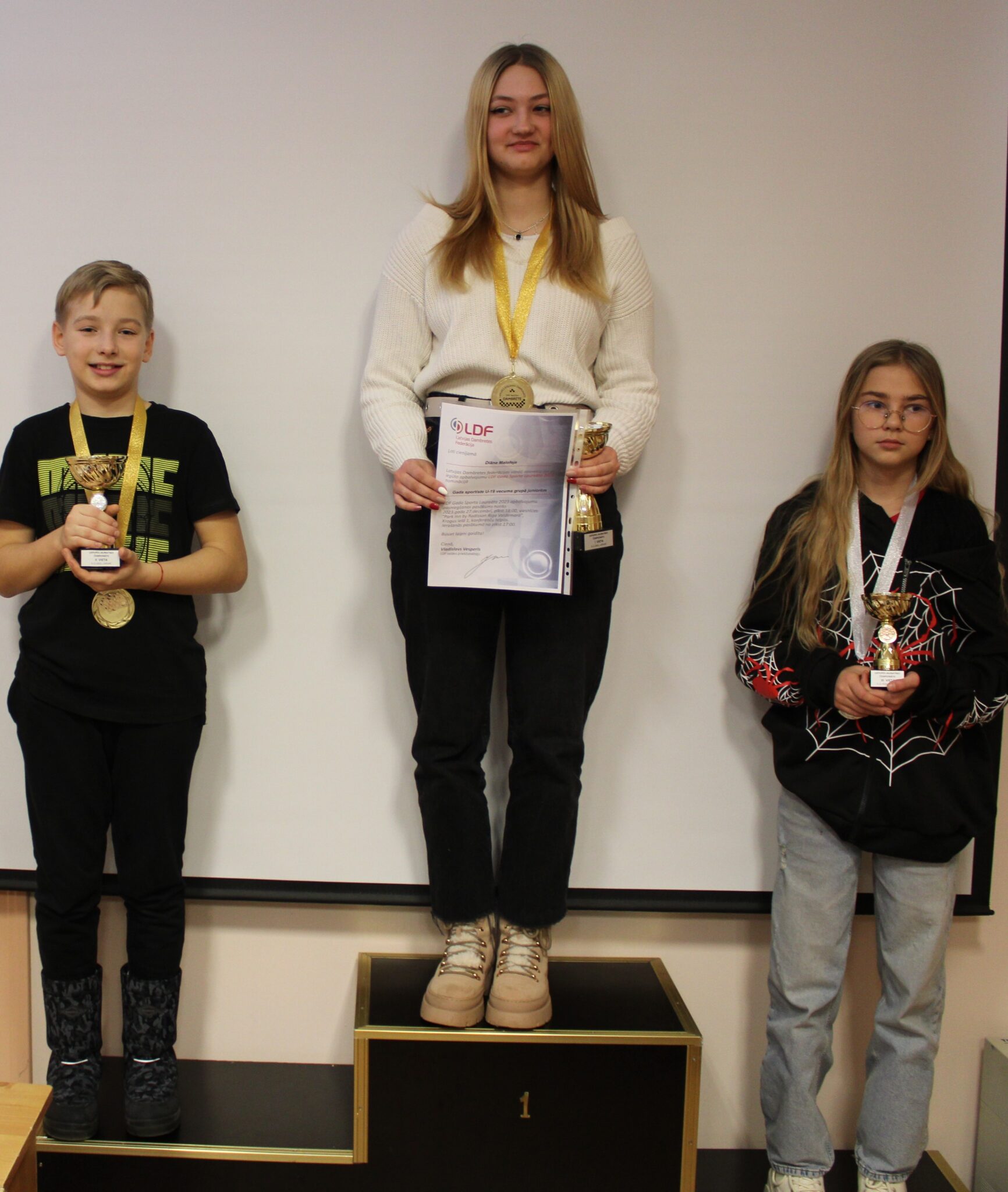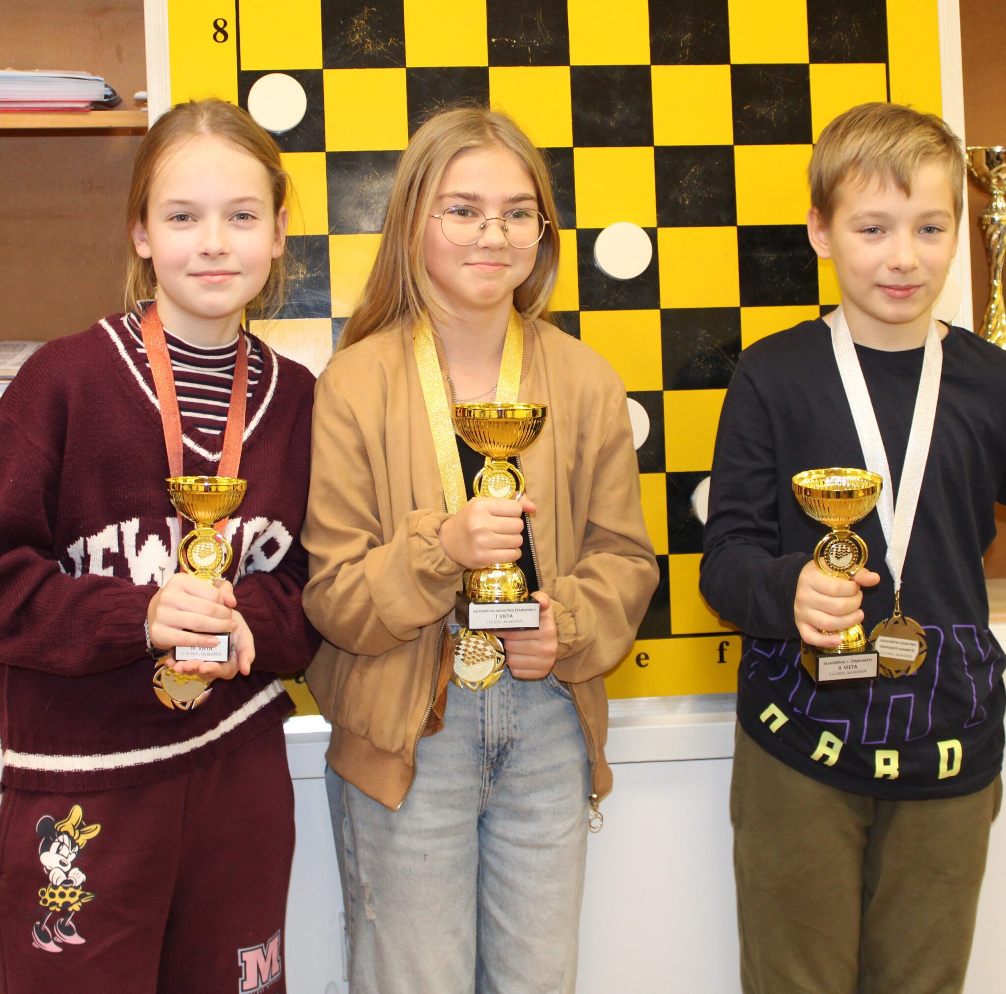 Otro un trešo vietu ar vienādu punktu skaitu izdalīja klases biedri Katrīna Reiziņa un Gustavs Ķūrens. Papildus kritēriji šoreiz sudraba godalgas dāvāja Gustavam Ķūrenam, bet bronzas – Katrīnai Reiziņai. Jāatzīmē, ka abi dambretisti par augstajiem sasniegumiem šī gada sacensībās 20.decembrī Limbažos saņems novada “Jaunatnes sporta laureāts 2023” apbalvojumus.