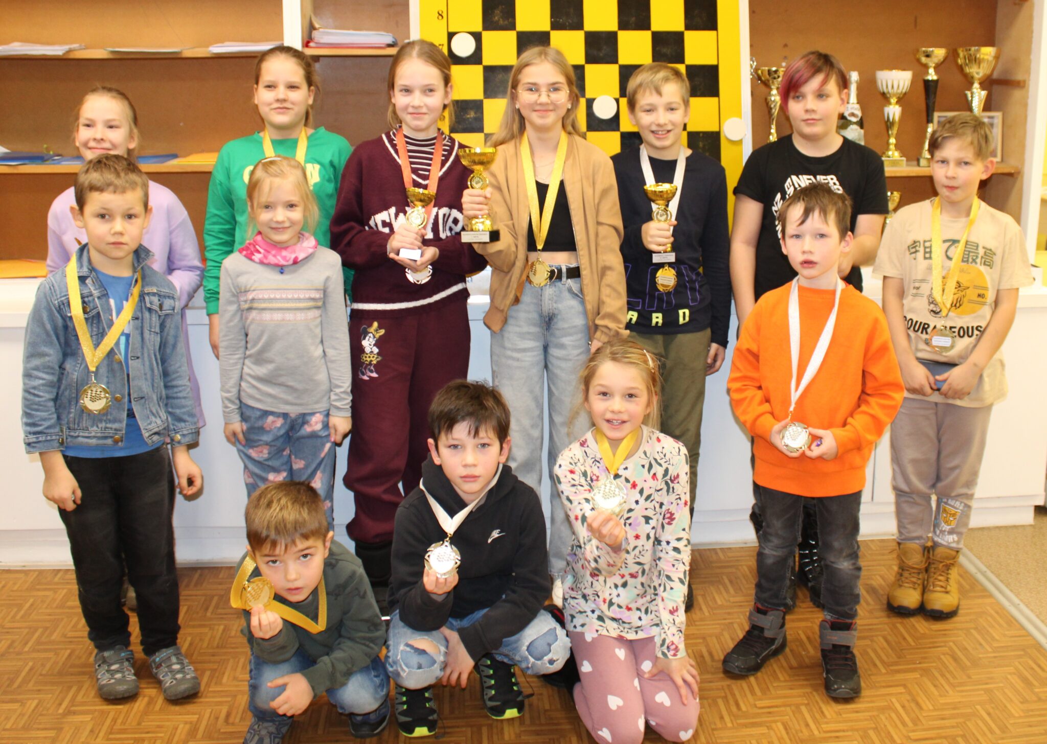 Salacgrīvas jaunatnes čempionāta laureāti pa vecuma grupām.