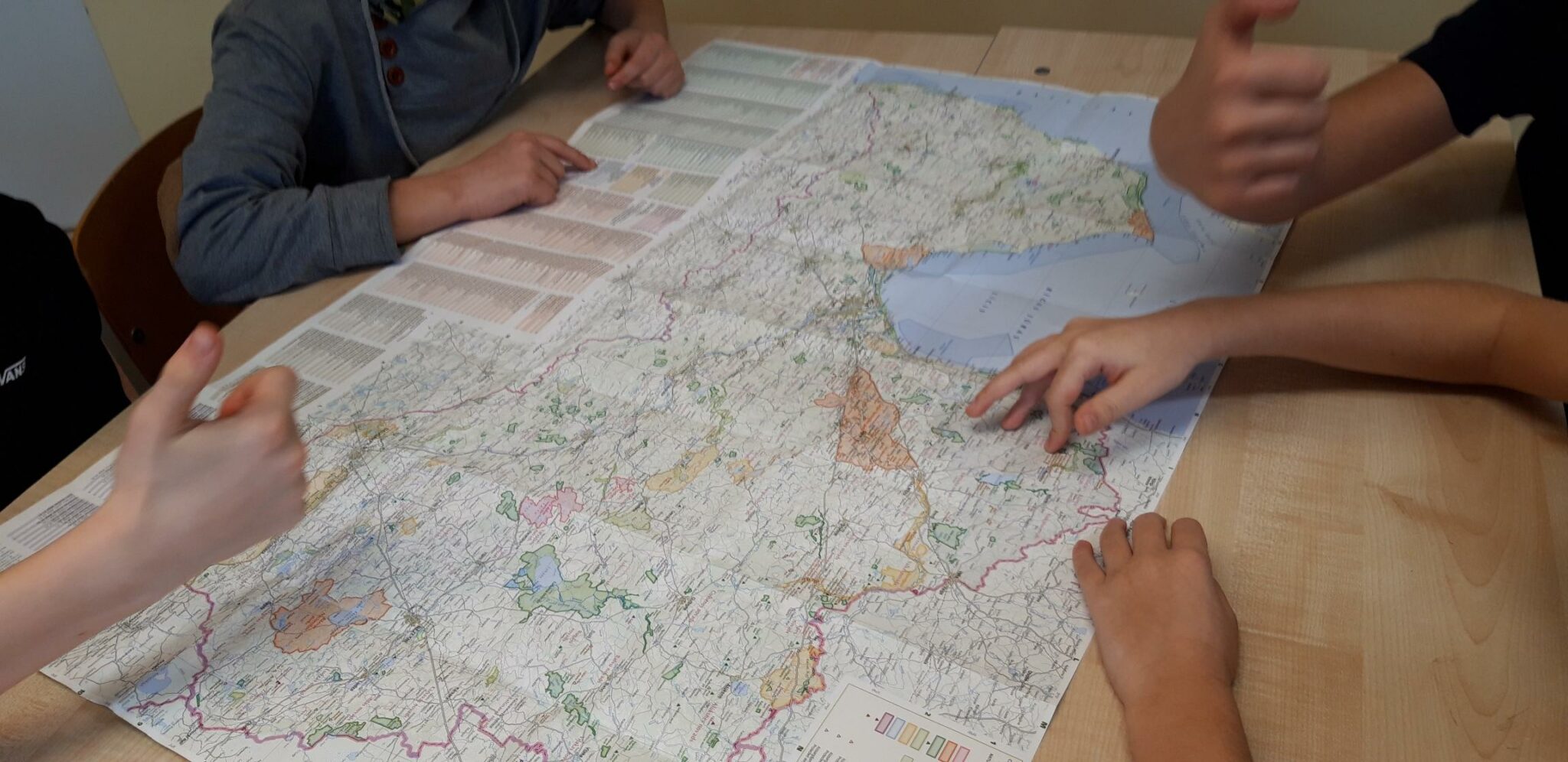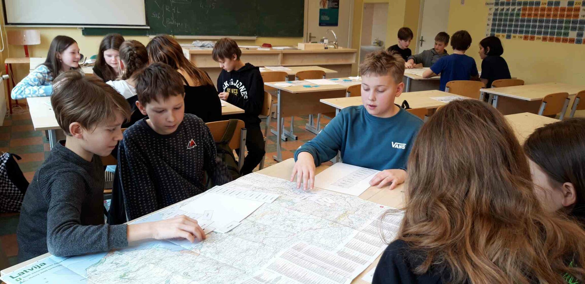 Skolēni mēģināja izprast, kur savu tecējumu sāk Salaca, Lielupe,  u.c. upes, kur tās ietek, tā izzinot ūdens ekosistēmu savstarpēju saistību.