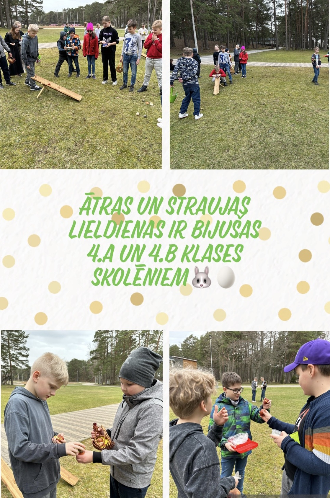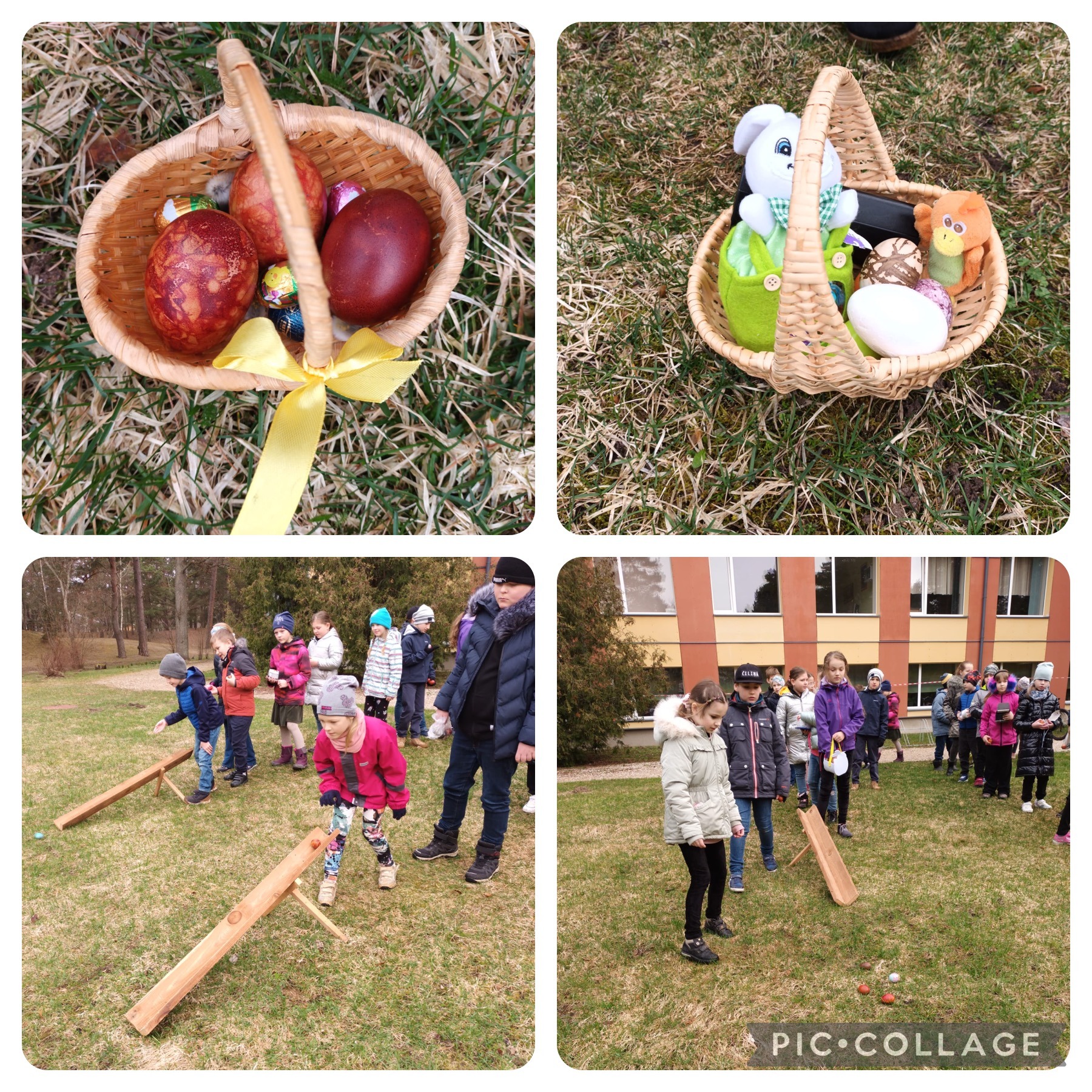 Šoreiz svētkus svinējām kopā ar paralēlajām klasēm – mācījām viens otram jaunas rotaļas un spēles. Sacentāmies olu ripināšanā, lēkšanā ar maisiem, žonglēšanā ar olu, skandējām tautasdziesmas un ticējumus, vērojām laika apstākļu ticējumus. Protams, arī kāvāmies ar olām un ēdām tās ar sāli.