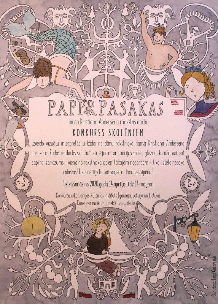 “Papīrpasakas” aicina skolēnus vecumā no 7 līdz 15 gadiem radīt savu vizuālo interpretāciju vienai no rakstnieka Hansa Kristiana Andersena daudzajām apbrīnojamajām pasakām. Radošais darbs var būt zīmējums, animācijas video, glezna, kolāža vai pat papīra izgriezums. Pieteikšanās konkursam no 2020.gada 14.aprīļa līdz 14.maijam, un balvā būs iespēja saņemt jaunu velosipēdu!