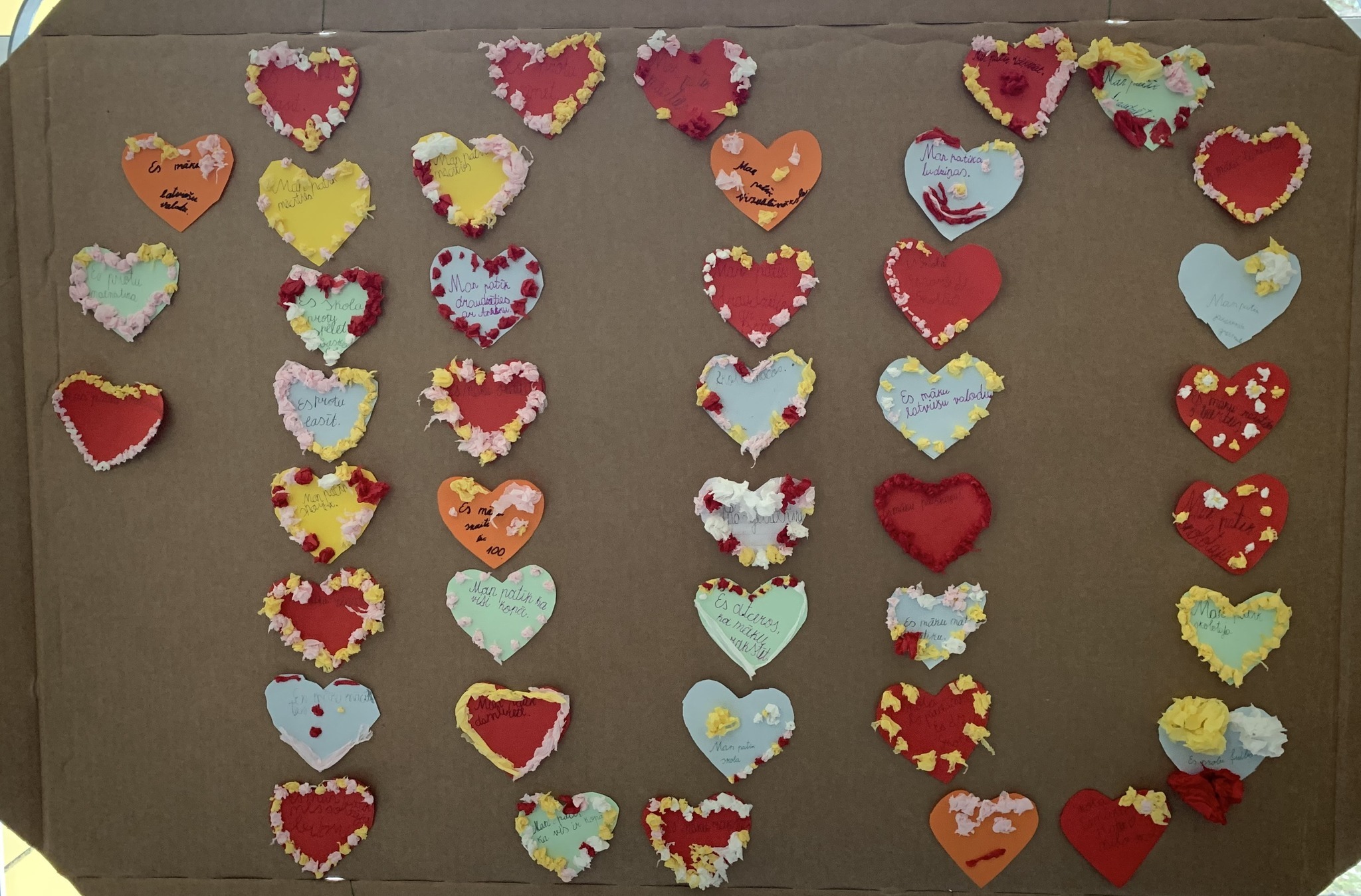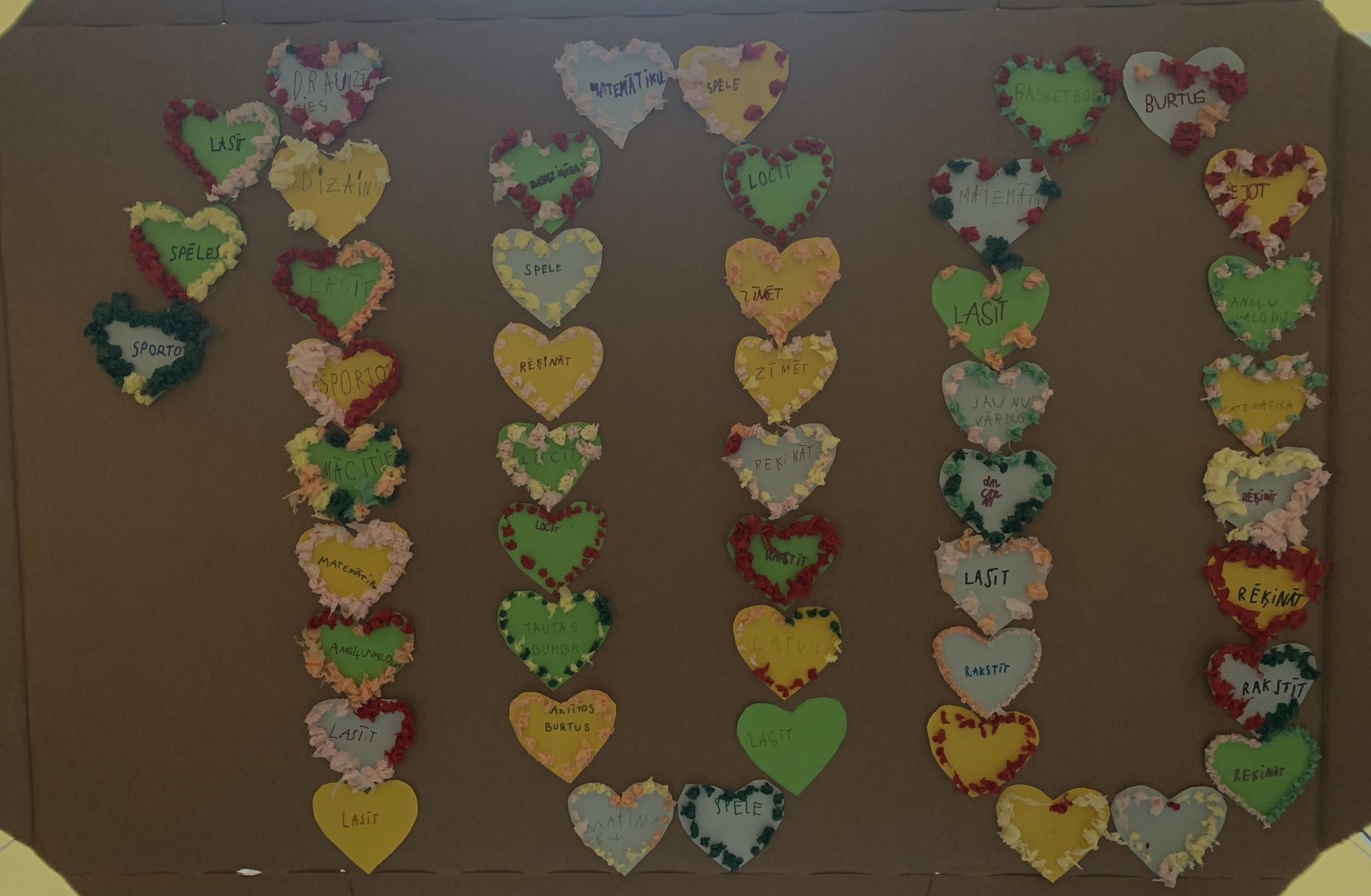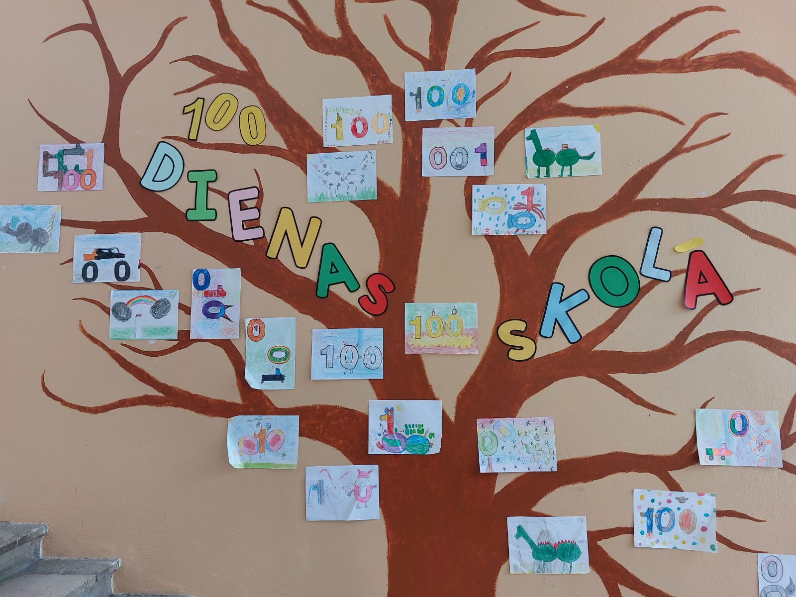 Sagaidot šo svētku dienu, pirmklasnieki izgrieza košas sirsniņas un uz tām uzrakstīja, ko viņi iemācījās 100 dienās. No mazajām sirsniņām skolēni izveidoja jubilejas skaitli – 100.