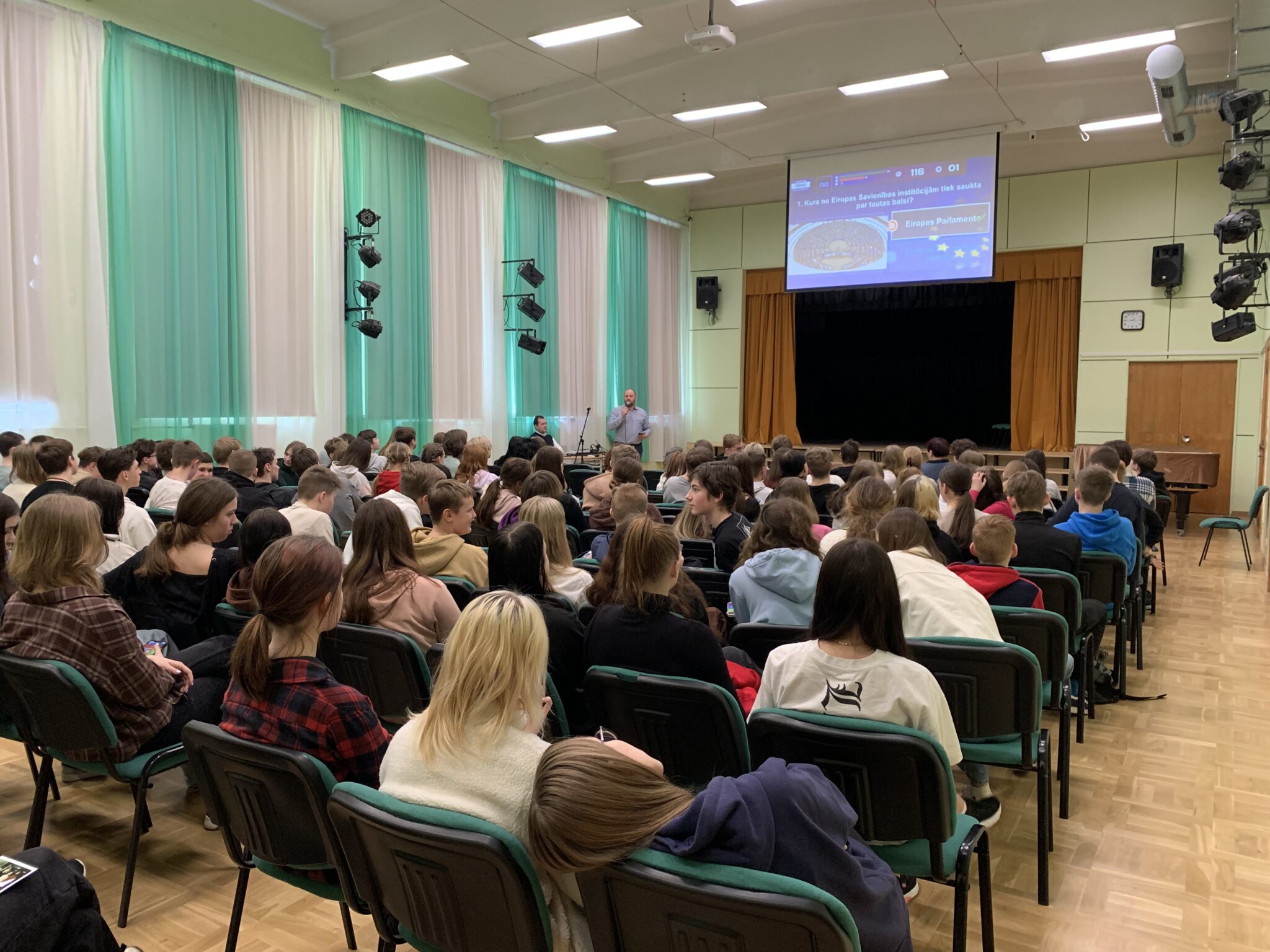 21.februārī 7. – 12. klašu skolēni klausījās, sarunājās, iedziļinājās, domāja, veidoja, uzstājās, prezentēja, jo ciemos pie mums Eiropas Savienības mājas pārstāvji – Eiropas Kustība Latvijā prezidents Andris Gobiņš, Latvijas Antropologu biedrības līdzdibinātājs Juris Zalāns un mākslinieks Egils Mednis.