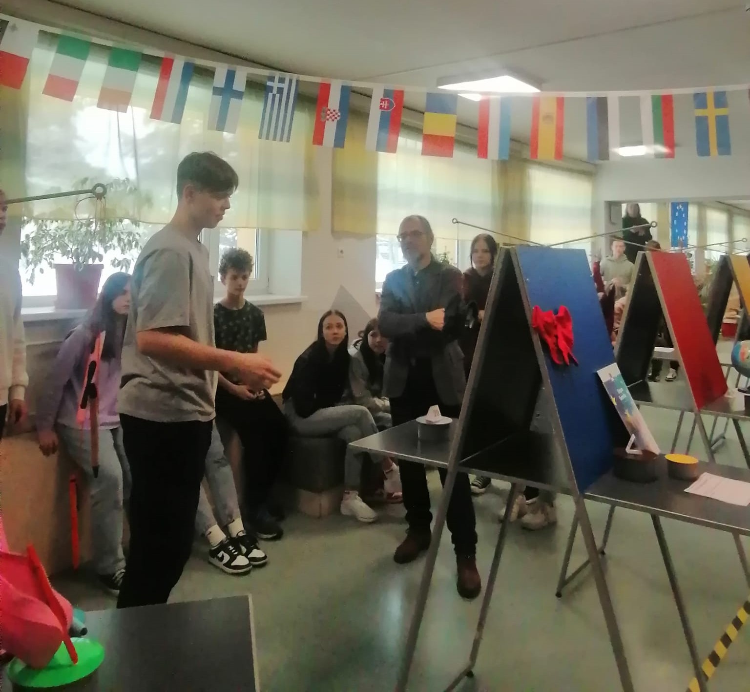 Lai labāk iepazītu, atsvaidzinātu atmiņā esošo informāciju un sagatavotos Eiropas eksāmenam, skolēni paši veidoja kādu eksponātu atbilstoši tematam par Eiropas Savienību.