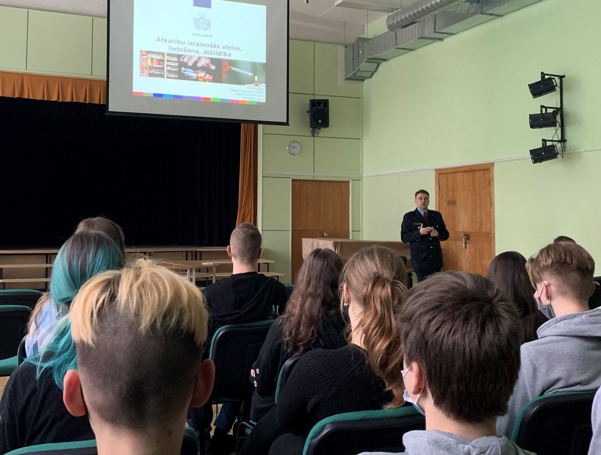 Skolēniem tika atgādināts par visām četrām atkarību izraisošo vielu grupām – nikotīna izstrādājumiem (t.s. populārajiem saltiem), alkoholiskajiem dzērieniem, enerģijas dzērieniem, kas nav atļauti līdz 18 gadu vecumam, un par narkotiskajām vielām , kuras ir aizliegtas vispār.