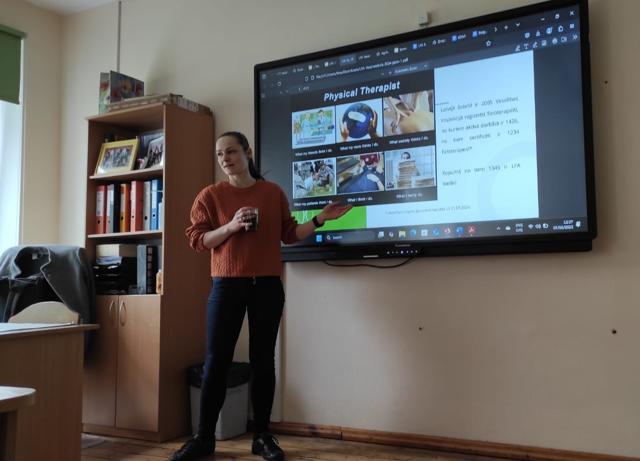 Daudz interesentu bija fizioterapeitei Līvai Tiesnesei. Skolēni ne tikai uzzināja par profesiju, bet ieguva informāciju , kā uzlabot savu pašsajūtu -“Tikšanās ar fizioterapeiti bija ļoti interesanta un man noderīga. Tagad cenšos vairāk kustēties, lai mazāk sāpētu muskuļi” , atzīst kāda meitene.