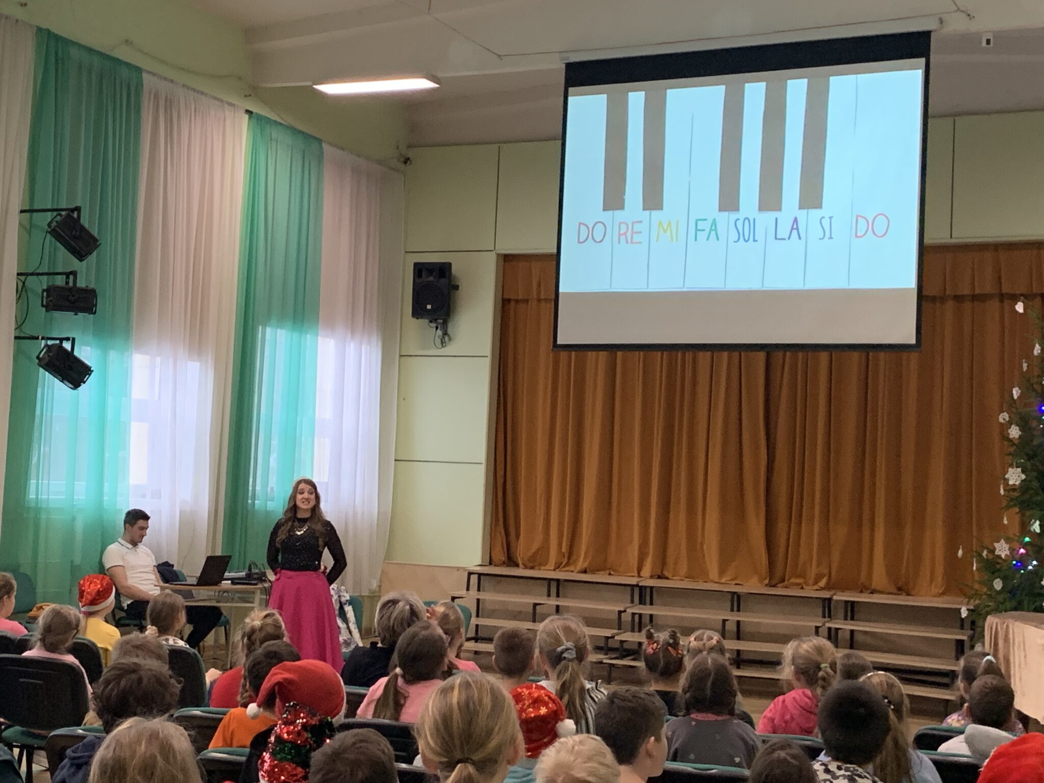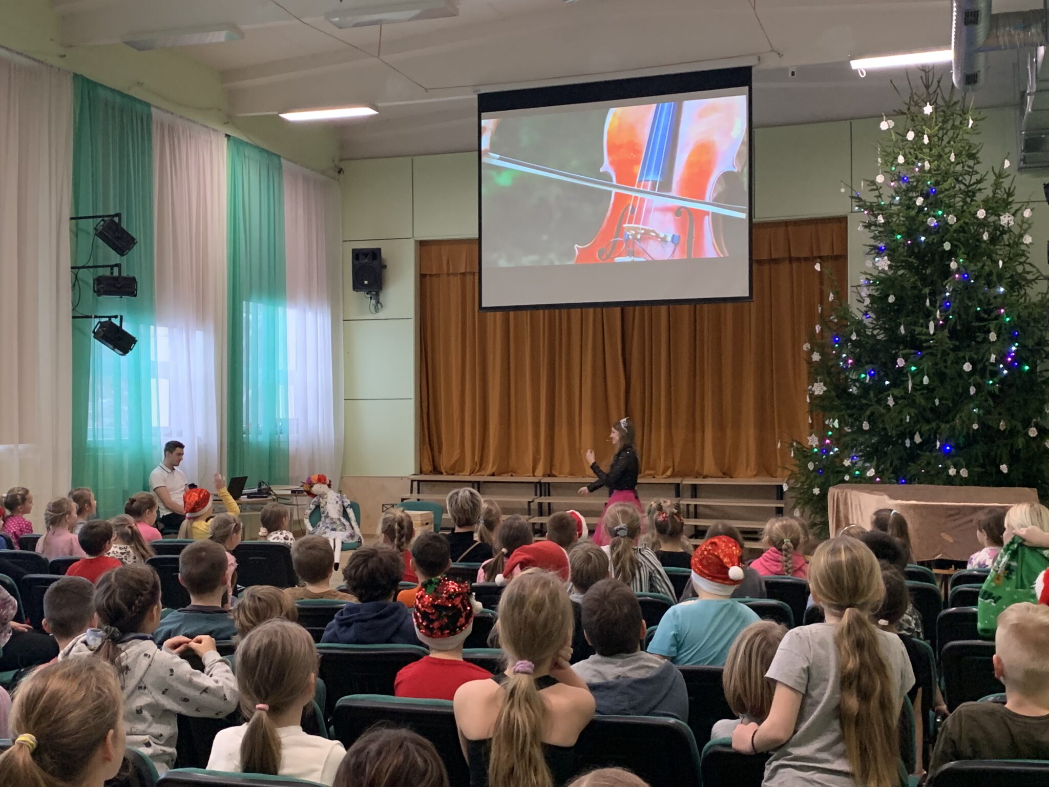 16.decembrī, klātienes nodarbību mūzikā un svešvalodā izmantoja sākumskolas skolēni, kuri kopā ar princesi Miu no Mūzikas karaļvalsts mēģināja atvērt dārgumu lādīti, iepazīstoties ar Ziemassvētku dziesmām latviešu, angļu un pat spāņu valodā. Iepazīstoties ar dažādiem mūzikas instrumentiem, no kuriem rodas šīs skaistās dziesmu skaņas – čells, bungas, elektriskā ģitāra. Iepazīstoties ar nošu nosaukumiem, Mi un Re mažoru. Iepazīstoties ar kora diriģentu darbarīkiem – kamertoni un zizli. Prieks par bērnu zināšanām.