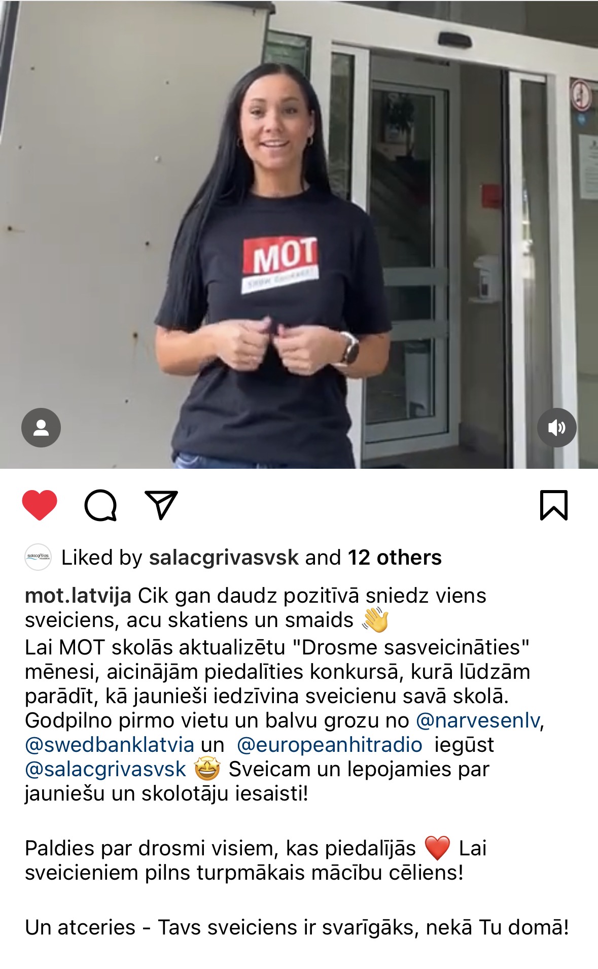 Mūsu skolā nav problēmu sveicināšanās jomā, taču šis mēnesis šo procesu padarīja jautrāku, mīļāku, atklātāku. Paldies MOT trenerei Marikai Zeidmanei, kas iesaistīja daļu skolēnus un skolotājus, lai taptu skaists video, kā sasveicināmies mūsu skolā.