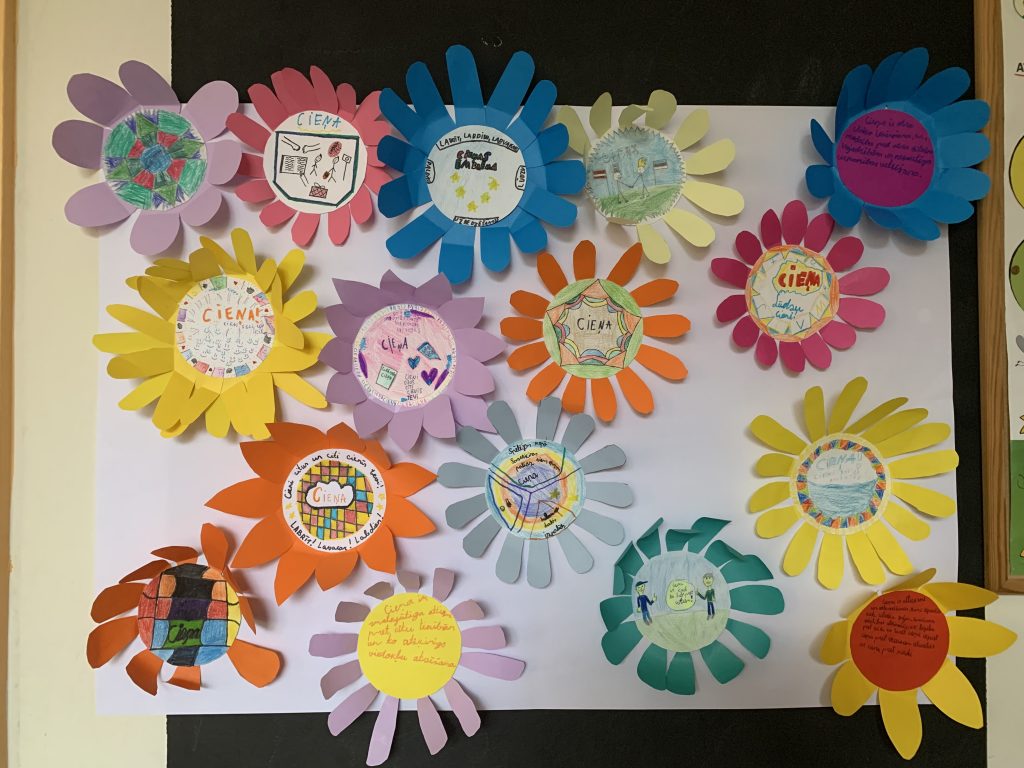 Pirmdiena – vērtības, to nozīme. Šajā mācību gadā skolas  vērtība ir “CIEŅA”. Klašu kolektīvi izstrādā uzskates materiālus, lai varētu veidot “runājošās sienas” un kabinetu durvis tiks rotātas ar konkrētās klases izpratni – kas ir cieņa?