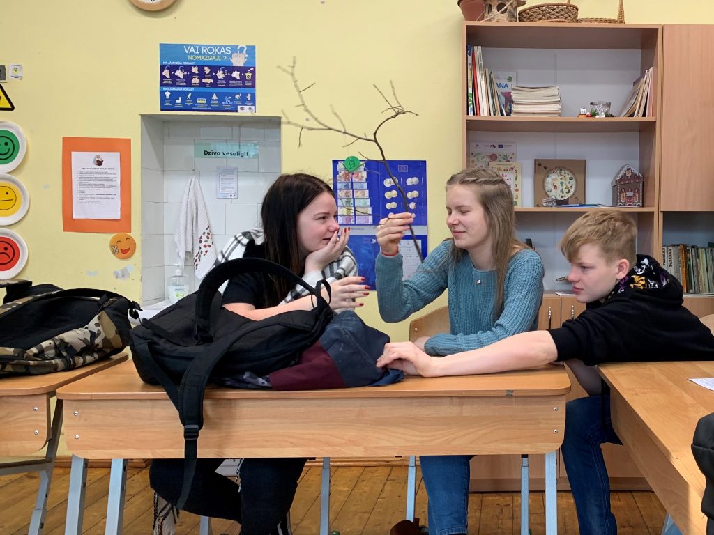 Otrs uzdevums – ekoskolas pārstāvji devās pa klasēm un mēģināja izzināt – kā skolēni un klašu audzinātāji atpazīst Latvijas kokus un krūmus pēc tā zara? Varēja gan smaržot, gan garšot 🙂 Vai zināji, ka osis lēnām izzūd no mūsu mežiem?