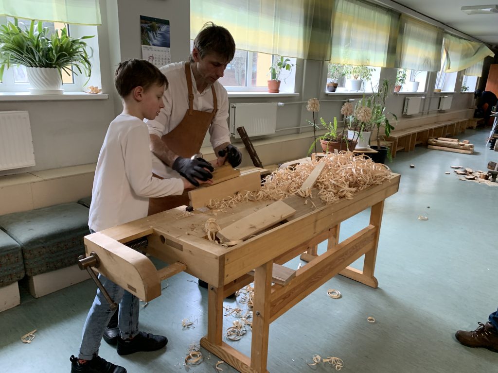 Tikmēr sākumskolas klasēs viesojās “Namdaru darbnīca” ar divām praktiskām nodarbībām.