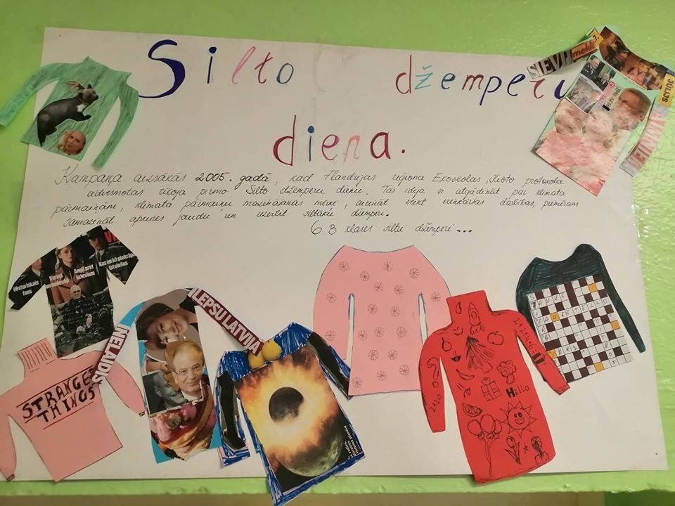 Otrdiena – Ekoskolas diena. Ekoskolu programma ir viens no visaptverošākajiem un arīdzan populārākajiem vides izglītības modeļiem pasaulē. Šīs dienas pirmais uzdevums bija samazināt siltuma temperatūru izglītības iestādē, tā ekonomējot dabas resursus. Līdz ar to – šodiena pasludināta arī par SILTO DŽEMPERU DIENU – klašu kolektīviem jāiesūta džemperbilde.