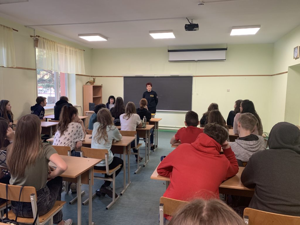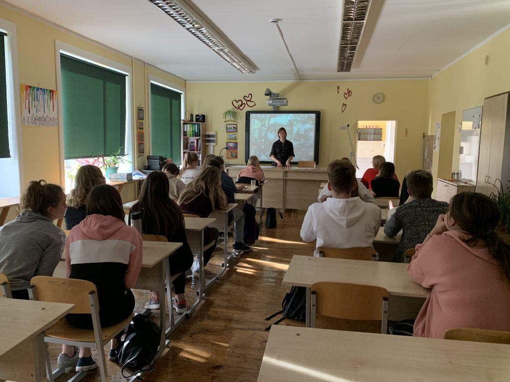 8.klašu skolēni piedalījās nodarbībā, kuru vadīja Salacgrīvas pilsētas kārtībniece Gunita Bisniece.
