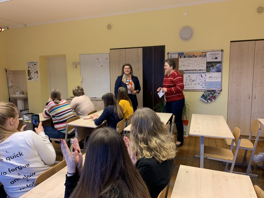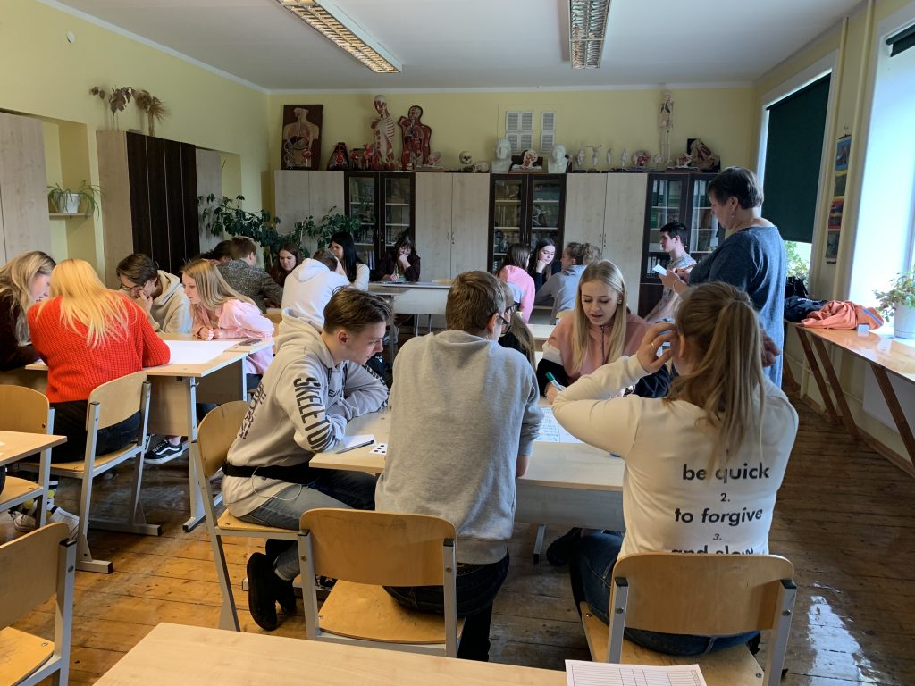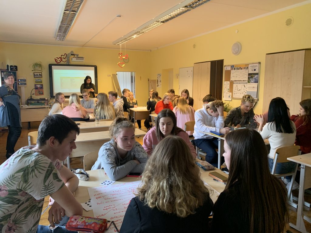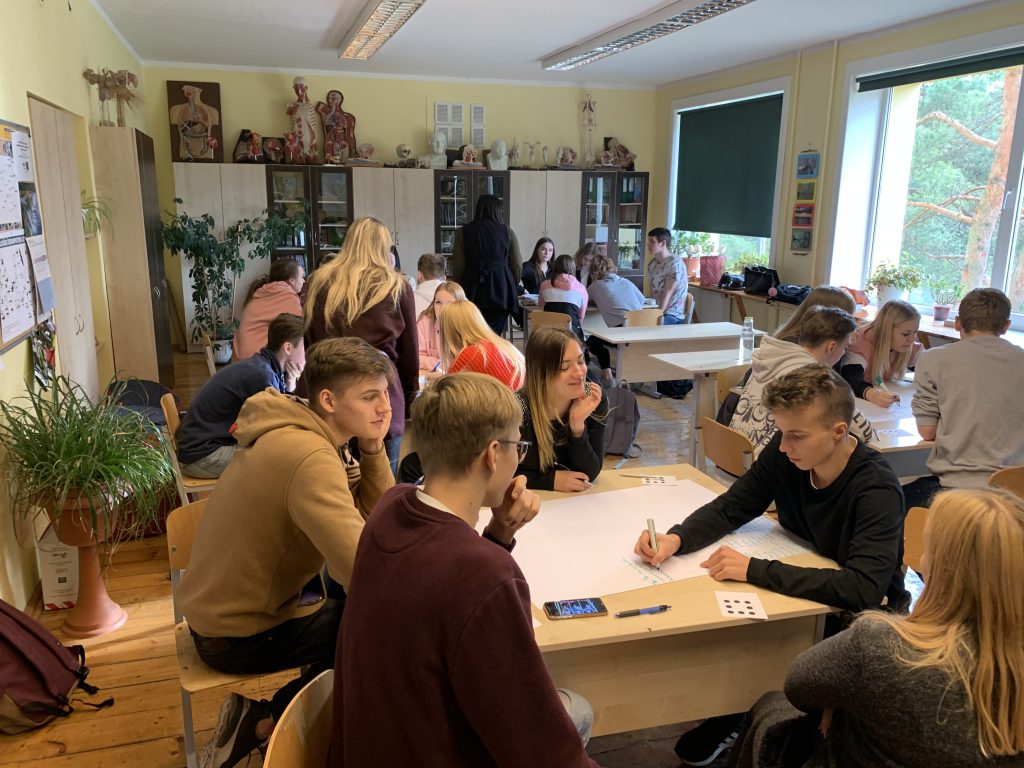 Vidusskolēniem nodarbība Karjeras izglītības projekta ietvaros “Komandas prasmes un radošums uzņēmējdarbībā.
