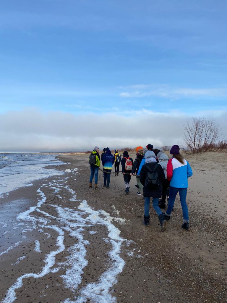 Dienu svaigā gaisā pavadījuši 7.b klases skolēni, ievērojot klases tradīciju – doties pārgājienā līdz Ainažiem. Esot nogājuši 19282 soļus! Pa ceļam, vērojot dabu, atraduši brūklenes – ekoskolas uzdevums izpildīts!