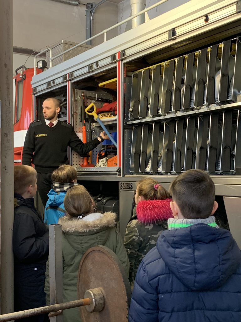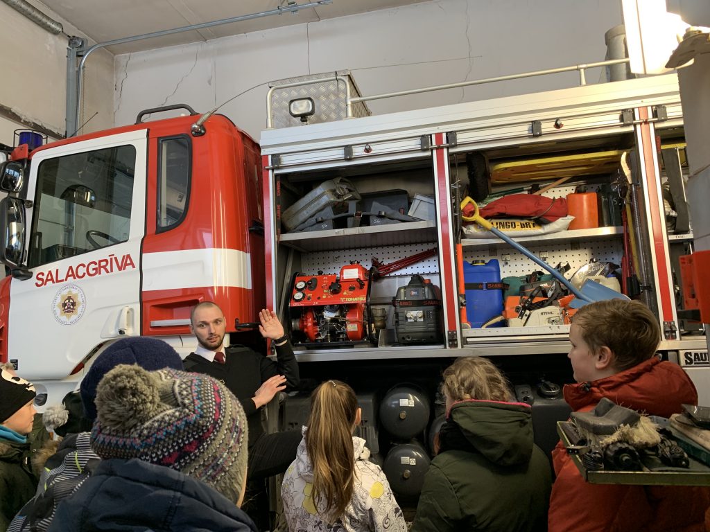 Sākumskolas skolēni izmantoja “Ēnu dienu” un devās aplūkot tuvējo ugunsdzēsības un glābšanas dienestu. Sarunā ar posteņa komandieri Kārli Bromu, skolēni varēja uzzināt visu par transporta tehnisko pusi, varēja iekāpt ugunsdzēsēju mašīnā, aplūkoja glābšanas dienesta telpas – kur ugunsdzēsēji trenējas, kāds ir dienas režīms, kur un kā jāmācās, lai apgūtu šo profesiju.