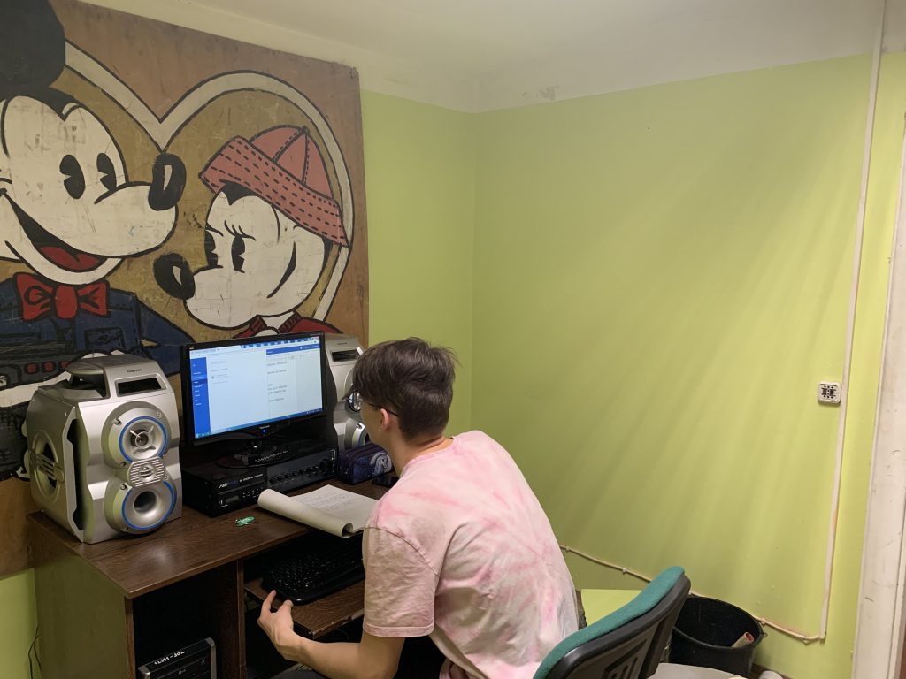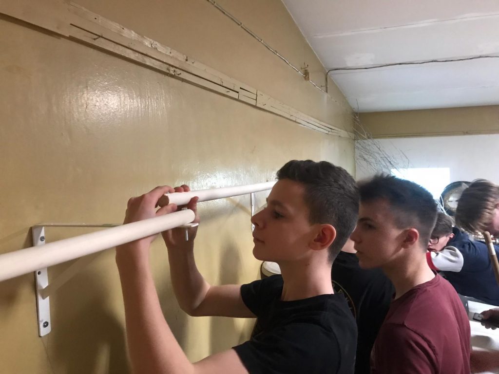 9.b klases skolēni Saule Ķūrena un Niks Jakovickis darbojās ar krāsām – nokrāsoja sienas skolas radio telpai, labiekārtoja to ar jaunākām mēbelēm.