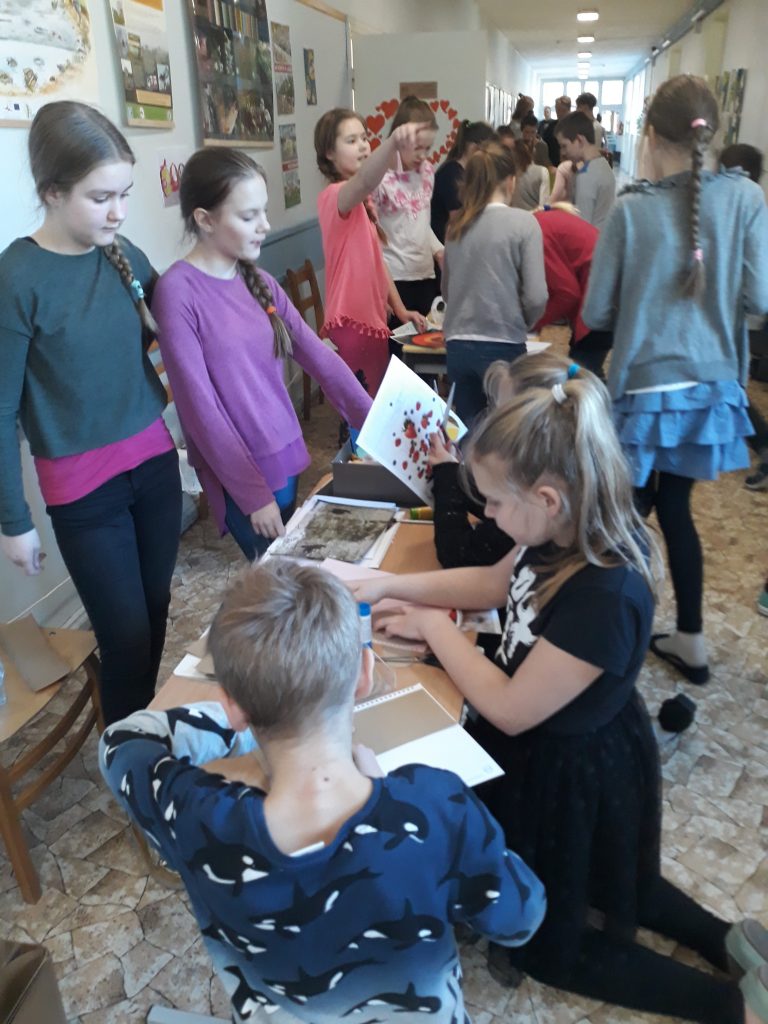 Varēja pagatavot arī skaistas apsveikuma kartiņas. Kāds pagatavoja pa vienai lietai, bet čaklākie paspēja pagatavot 2 līdz 3 lietas, ko aiznest uz mājām.