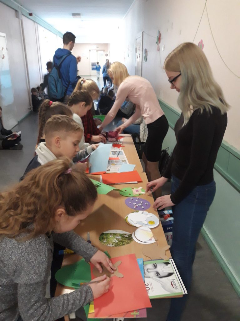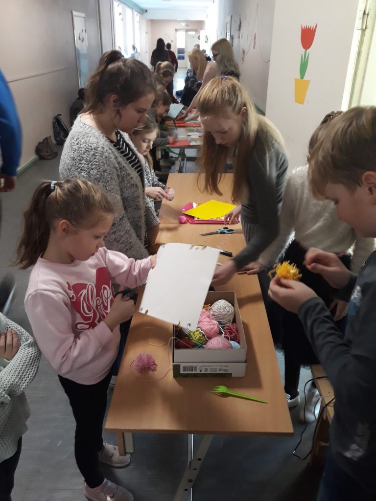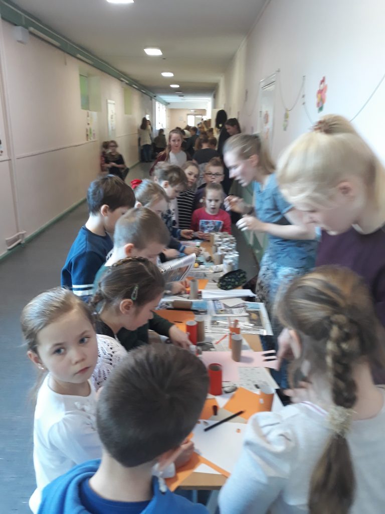 28.marta starpbrīžos divos skolas gaiteņos bija īsta rosība. Katrs varēja izvēlēties, kādu Lieldienu rotājumu vēlas pagatavot.