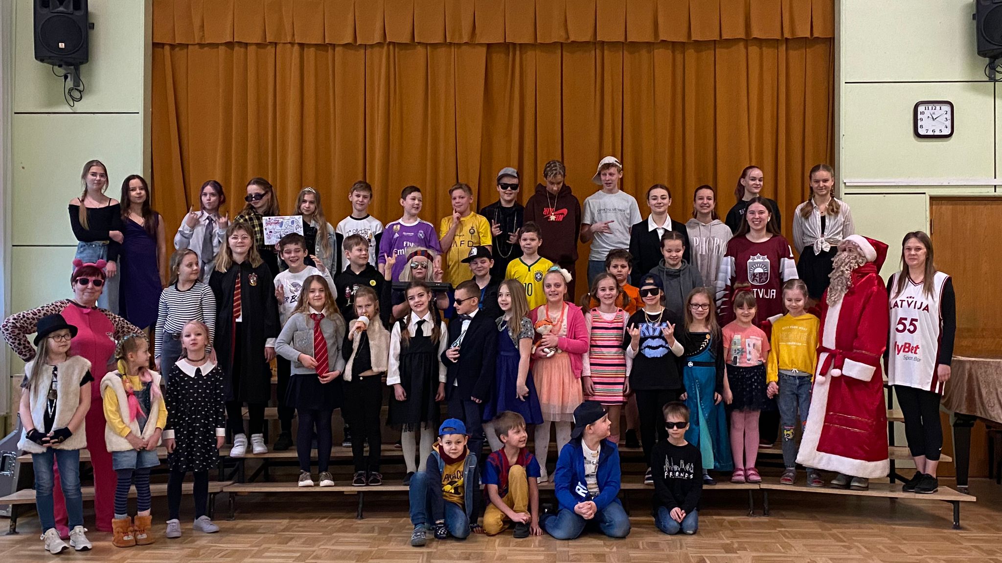 Šoreiz, skolēniem taisnība. Nepiekasīsimies:), jo arī skolotāji aktīvi atbalsta krāsaināko un raibāko aktivitāti mūsu skolā, kad ikdienas tērpus nomaina neparasti, izdomu un aksesuāru bagāti apģērbi!