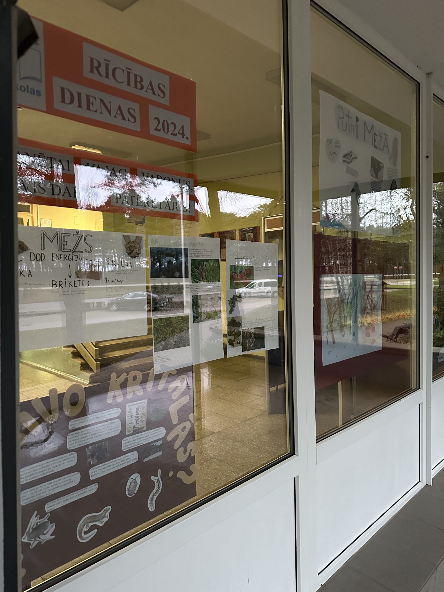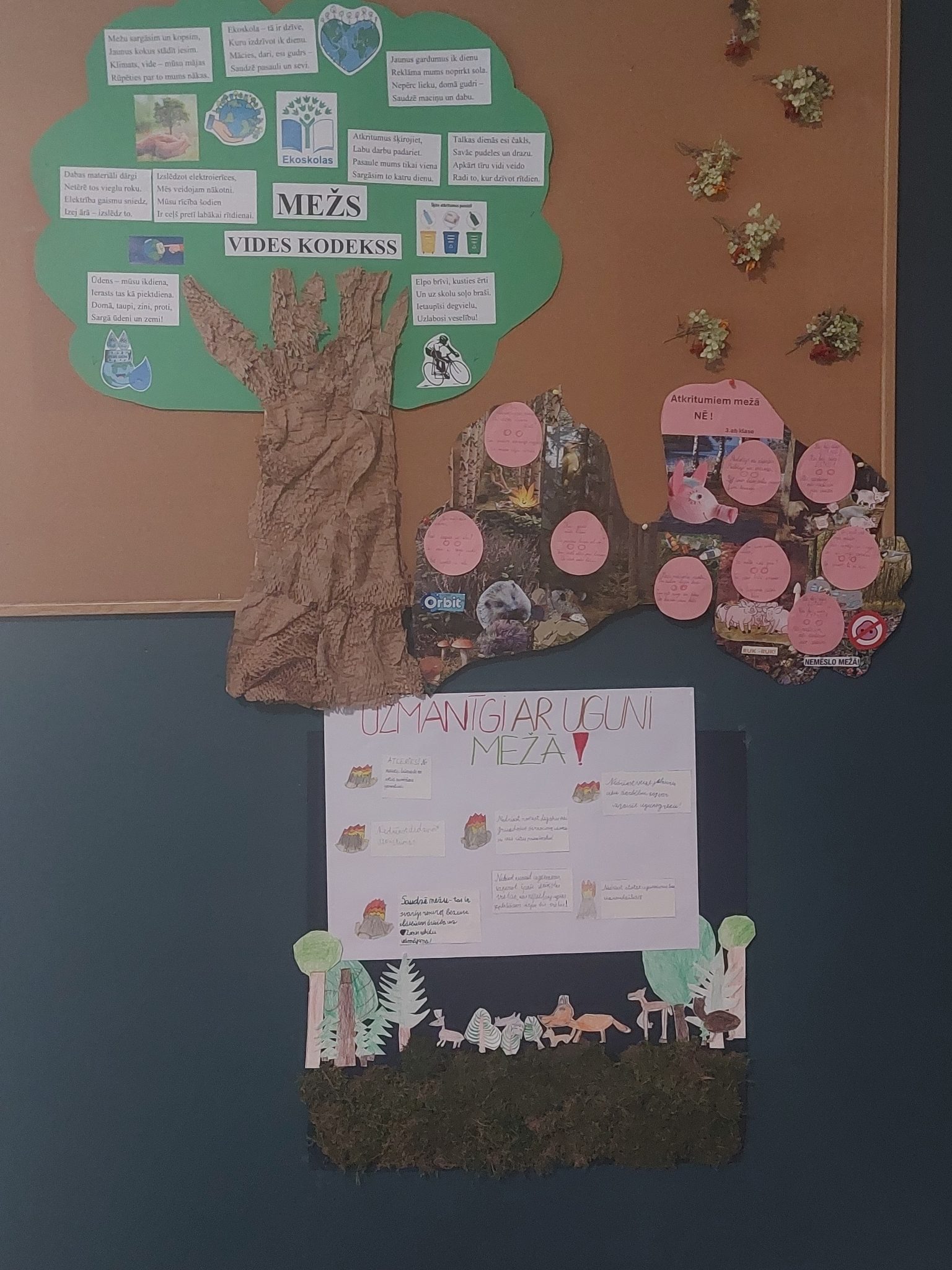 Nedēļu sākām ar to, ka klašu kolektīvos veidojām plakātu. Pievērsām uzmanību gan tam, kas atrodas mežā, piemēram, dzīvnieki un augi mežā (5.b un 9.b), putni mežā (6.b), dzīve kritalās (11. kl.), gan, ko mēs varam gūt no meža, piemēram, mežs dod enerģiju (9.a), mežs mūs ārstē (8.a un 8.b), koksnes izmantošana (12. kl.), atpūta mežā (7. kl.), gan akcentējām arī to, lai mēs nebūtu tikai patērētāji, bet arī rūpētos par mežu, piemēram, uzmanīgi ar uguni mežā (2.a un 2.b), atkritumiem mežā nē (3.a un 3.b), saudzē kokus mežā (4.a un 4.b), kā pareizi ievākt meža veltes (5.a), cieni meža iemītniekus (6.a), rūpējies par mežu (10. kl.).
