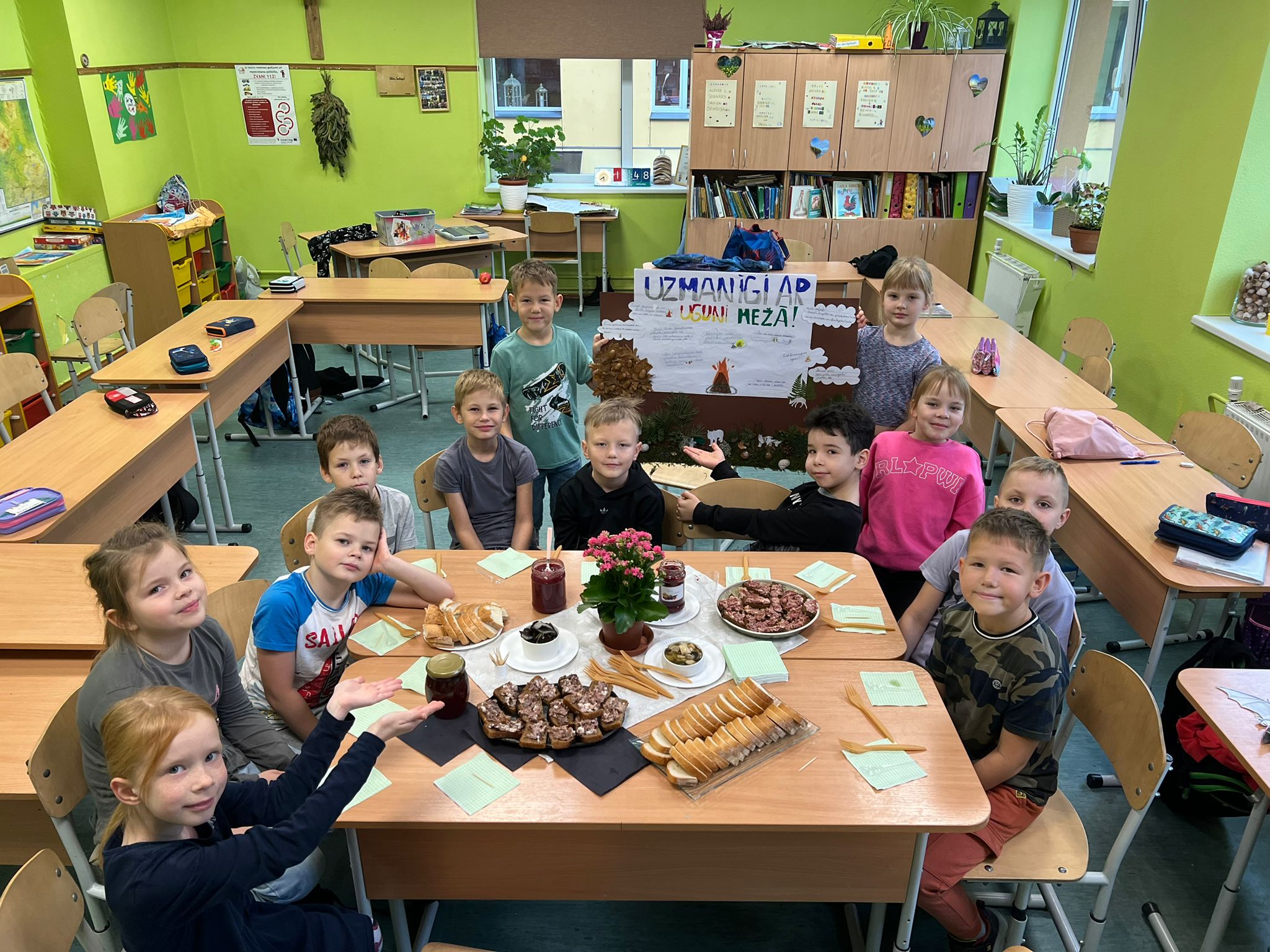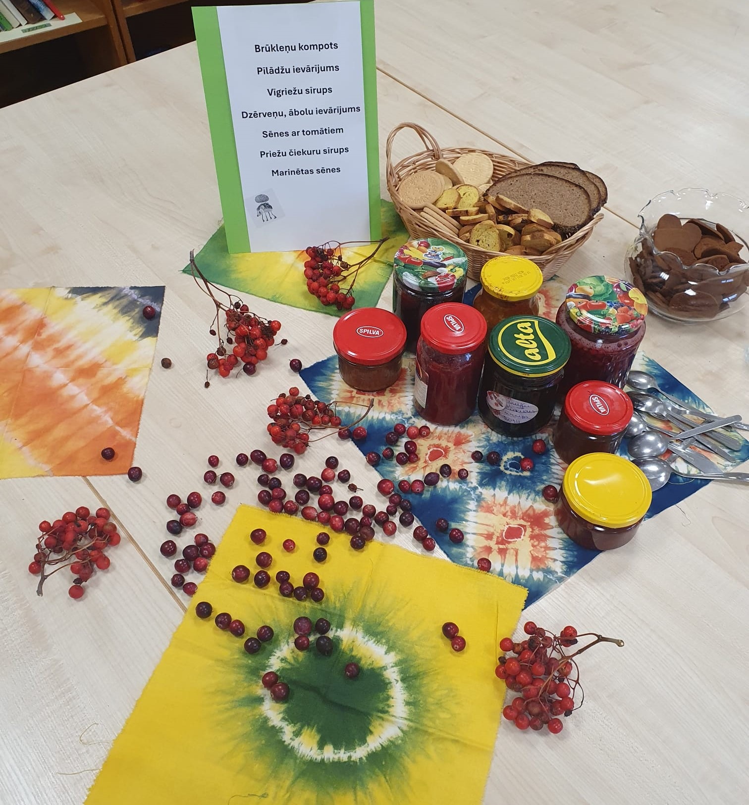 2.b klase degustēja meža gaļas konservus, meža aveņu ievārījumu, marinētas sēnes, brūkleņu ievārījumu un priežu čiekuru sīrupu (klases audzinātāja D. Kaša).