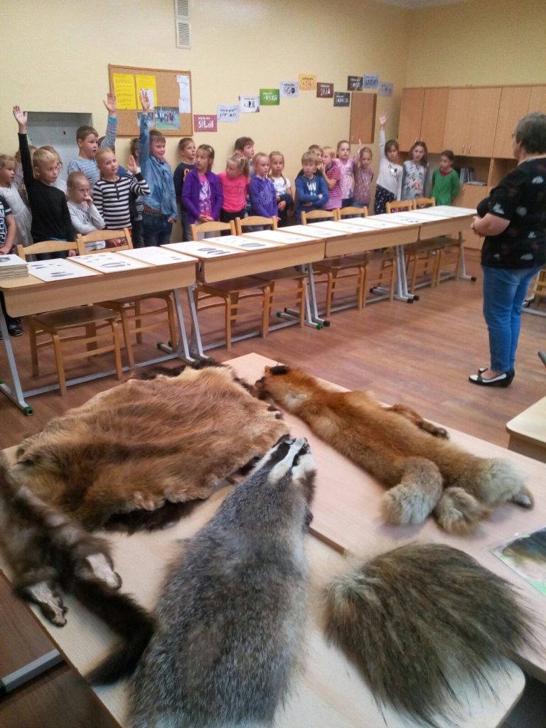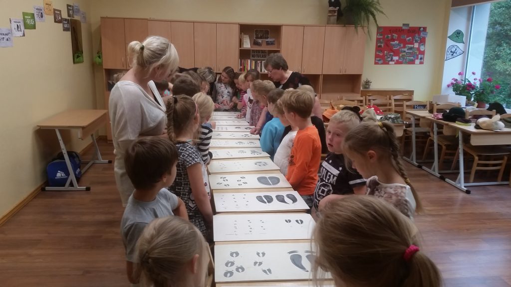 Nodarbību laikā skolēni varēja iepazīties ar meža iemītnieku – putnu un dzīvnieku – paradumiem, pataustīt zvēru ādas un pārbaudīt savas zināšanas, atpazīstot zvēru pēdas.